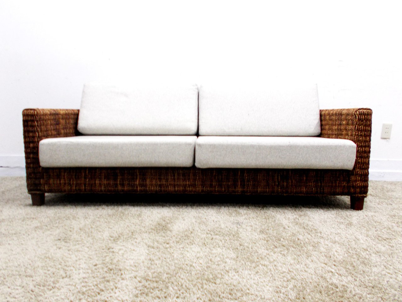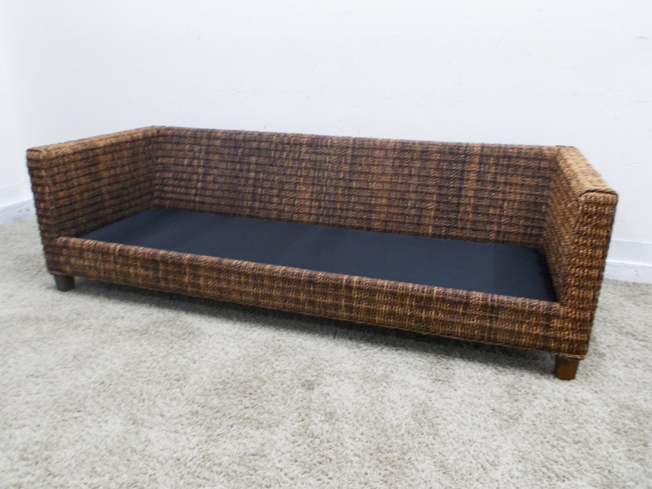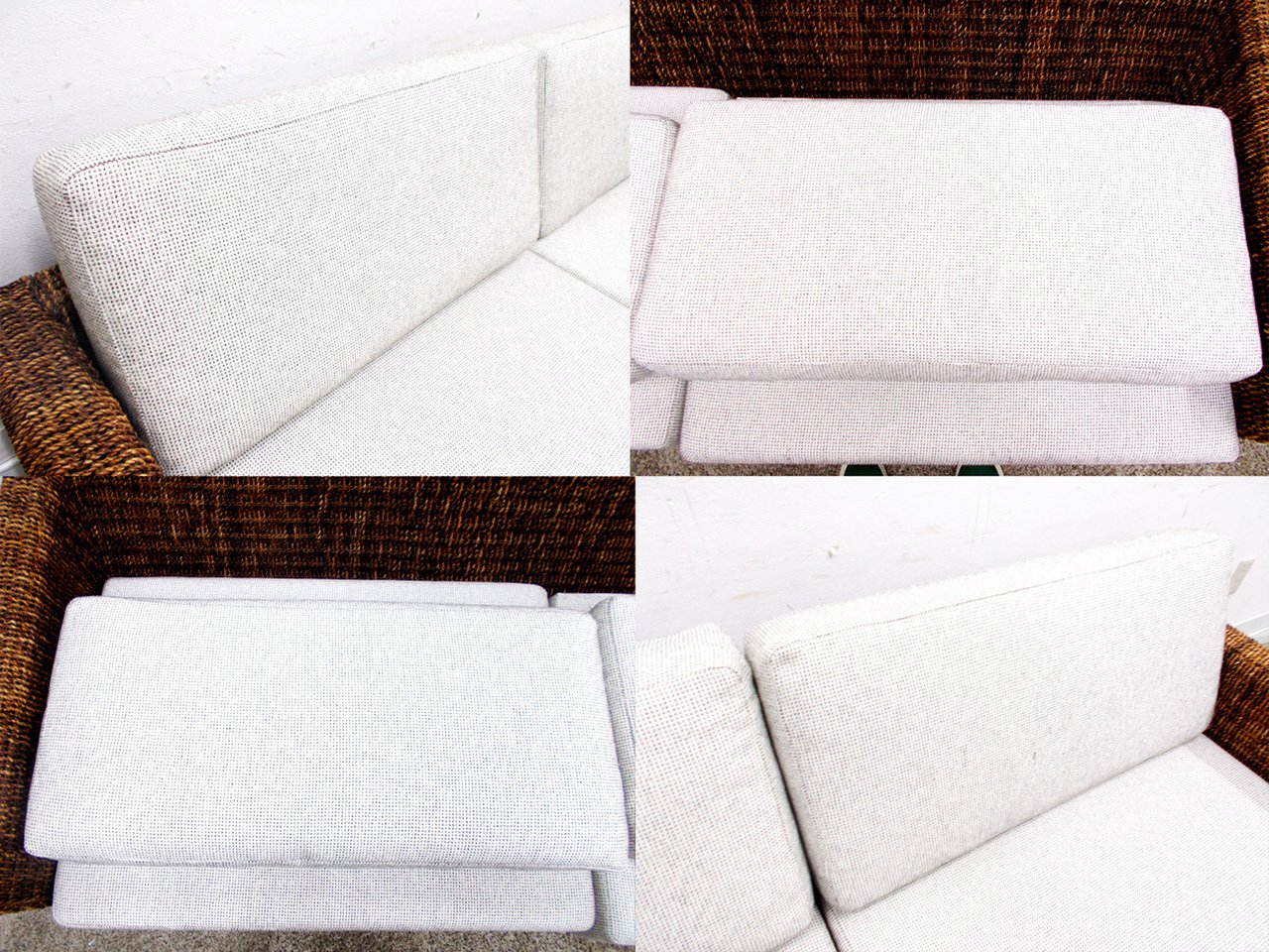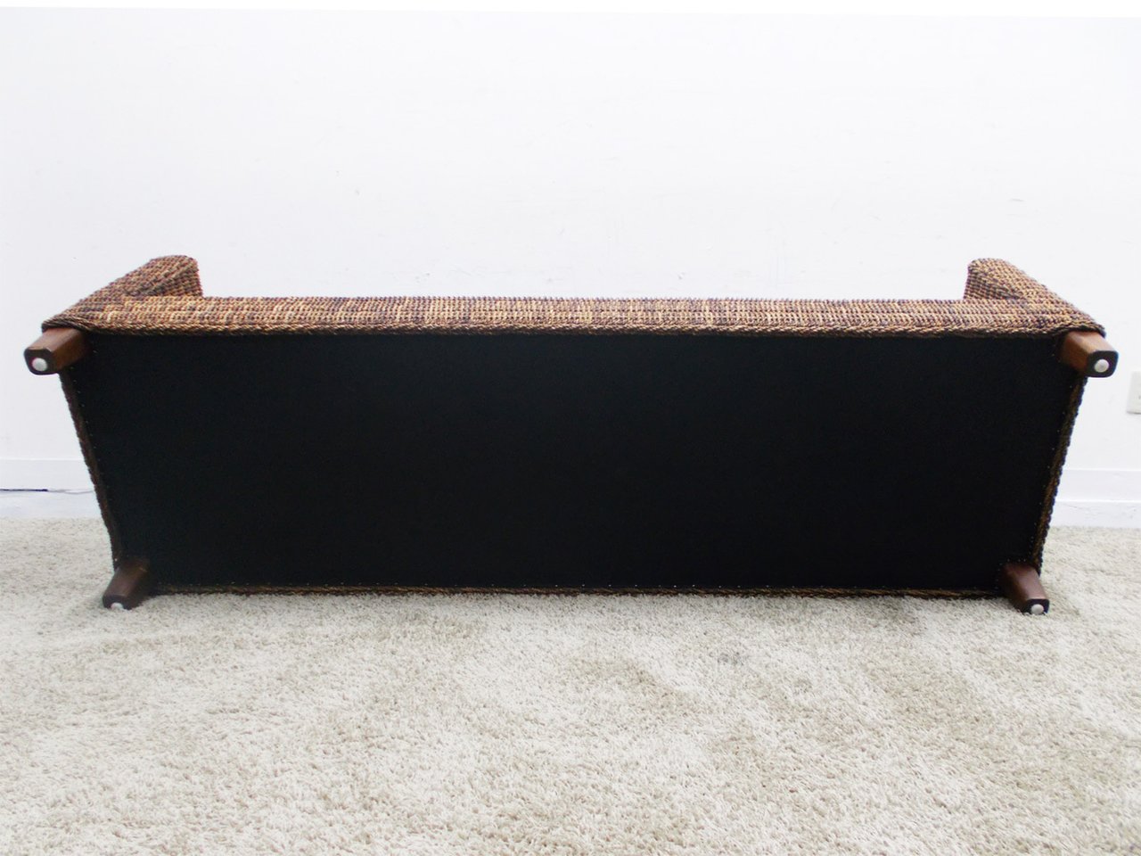 メーカー不明ですが、スクエアーでモダンな籐フレームソファです
