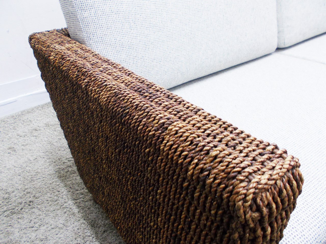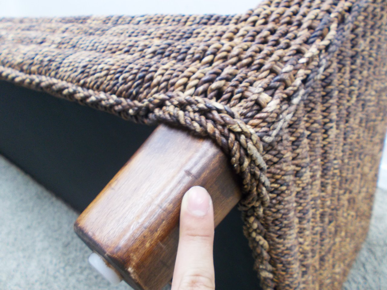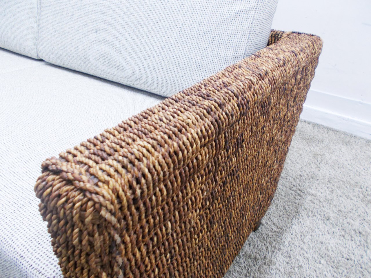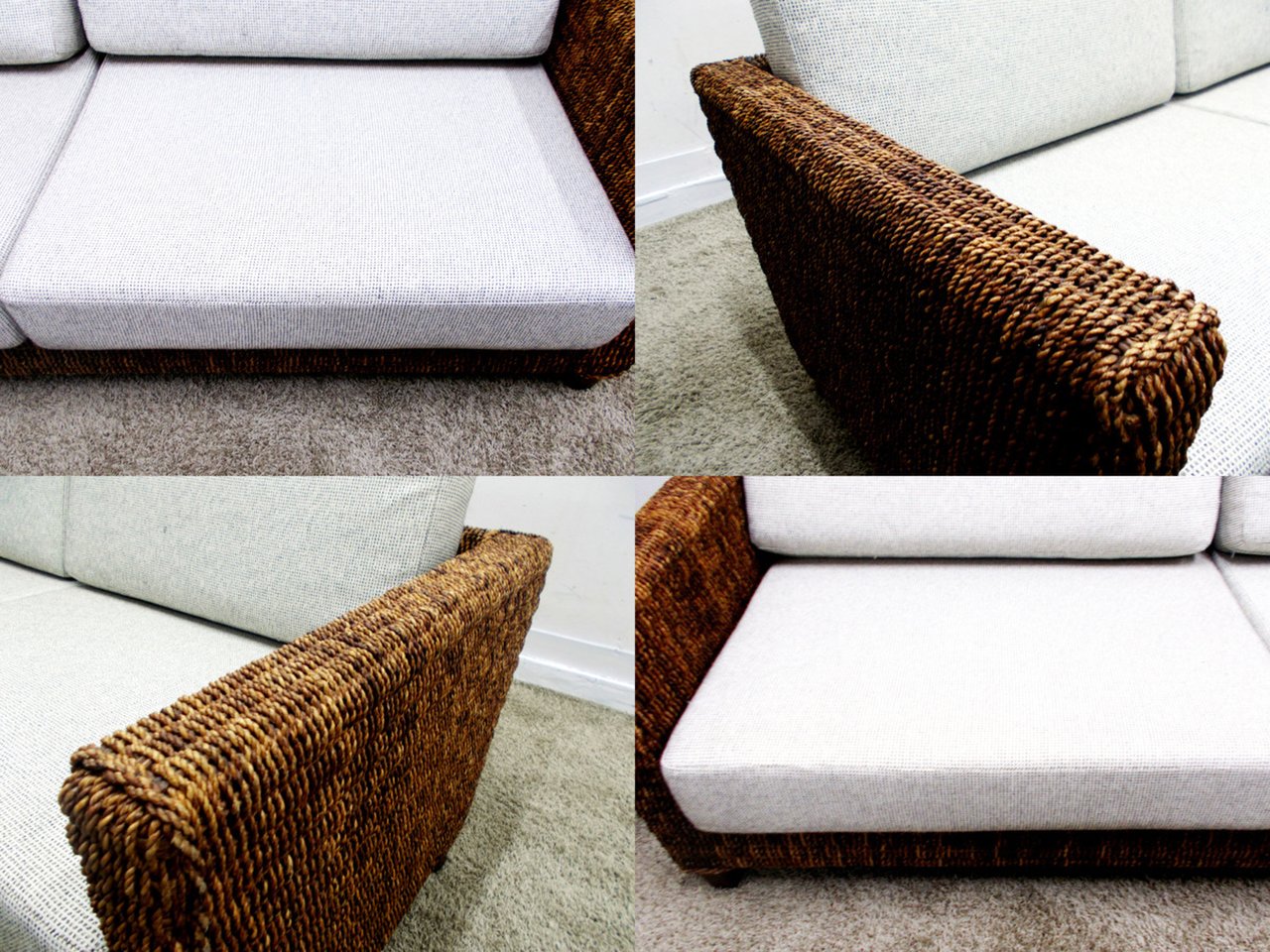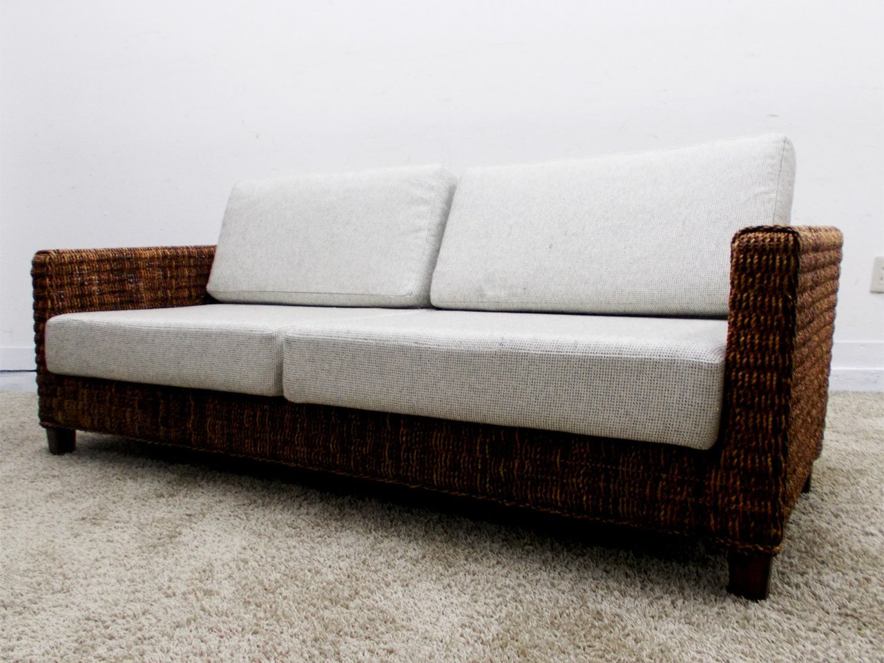 メーカー不明ですが、スクエアーでモダンな籐フレームソファです