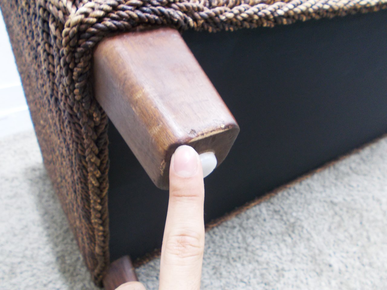 - あり黄ばみ・変色が広い範囲にうっすらある、または濃い黄ばみ・変色が一部ある。(例:三人用ソファ、二人用ソファ、一人用ソファの場合、背もたれ、肘かけ、座面等、 センターテーブルの場合、天板、脚にある。)