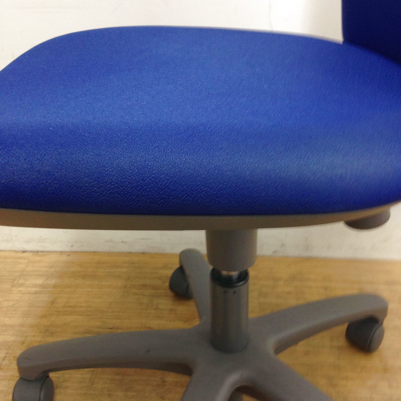 明るいブルー色で、どんなオフィスにもあうチェアです。