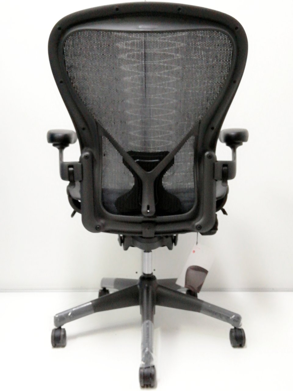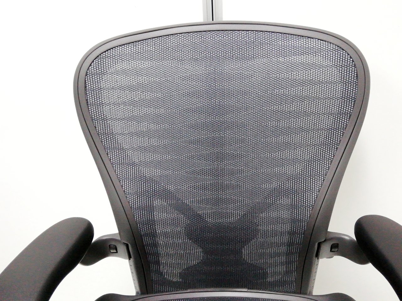 座った感じはふわっとした感触のメッシュ地。やはり、アーロンチェア!長時間座っているとその違いが顕著に表れます。