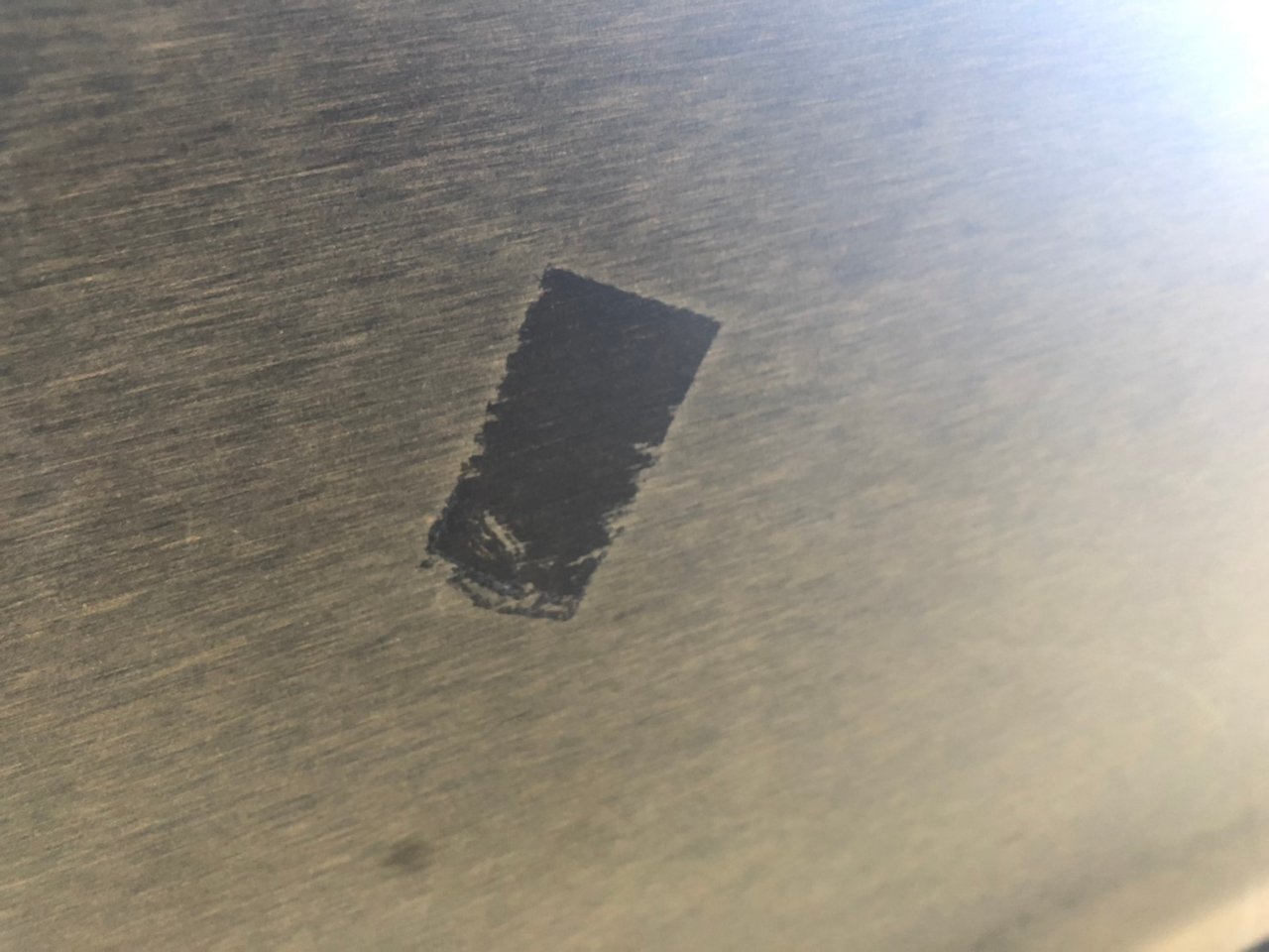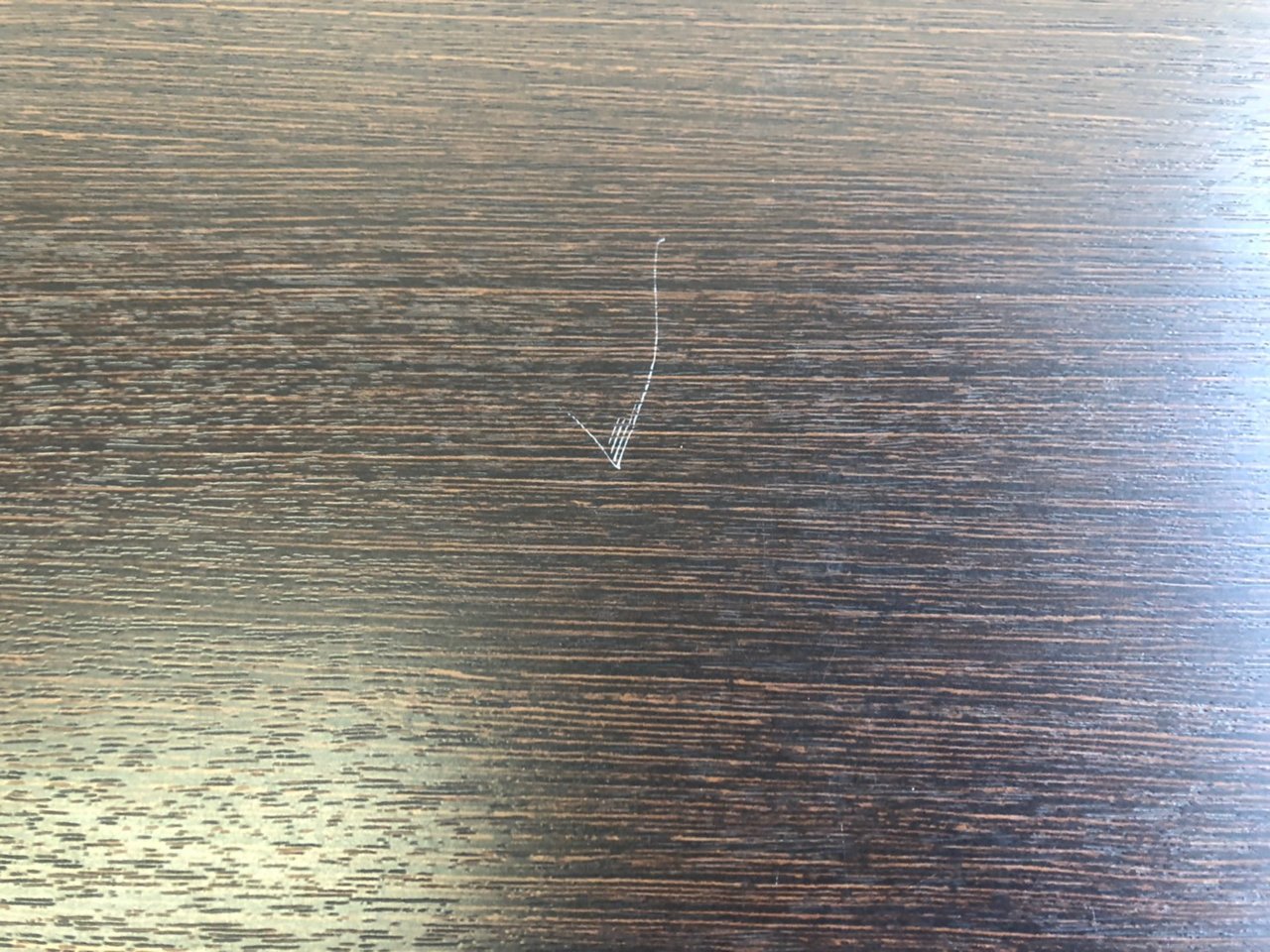 - 目立つ箇所あり傷・凹みが多数、深い傷・凹みが一部ある。(例、天板、幕板、棚板、サイド部分、脚部等にある。)