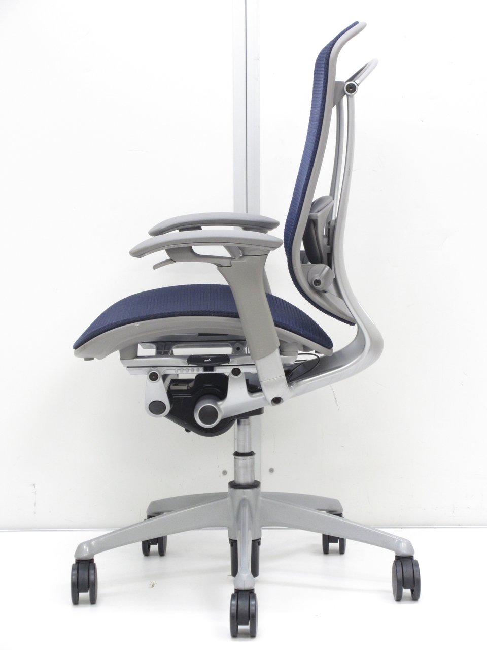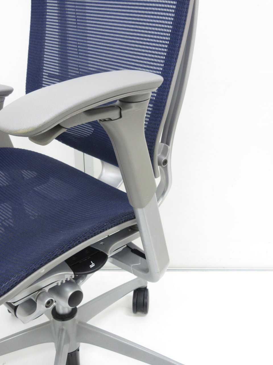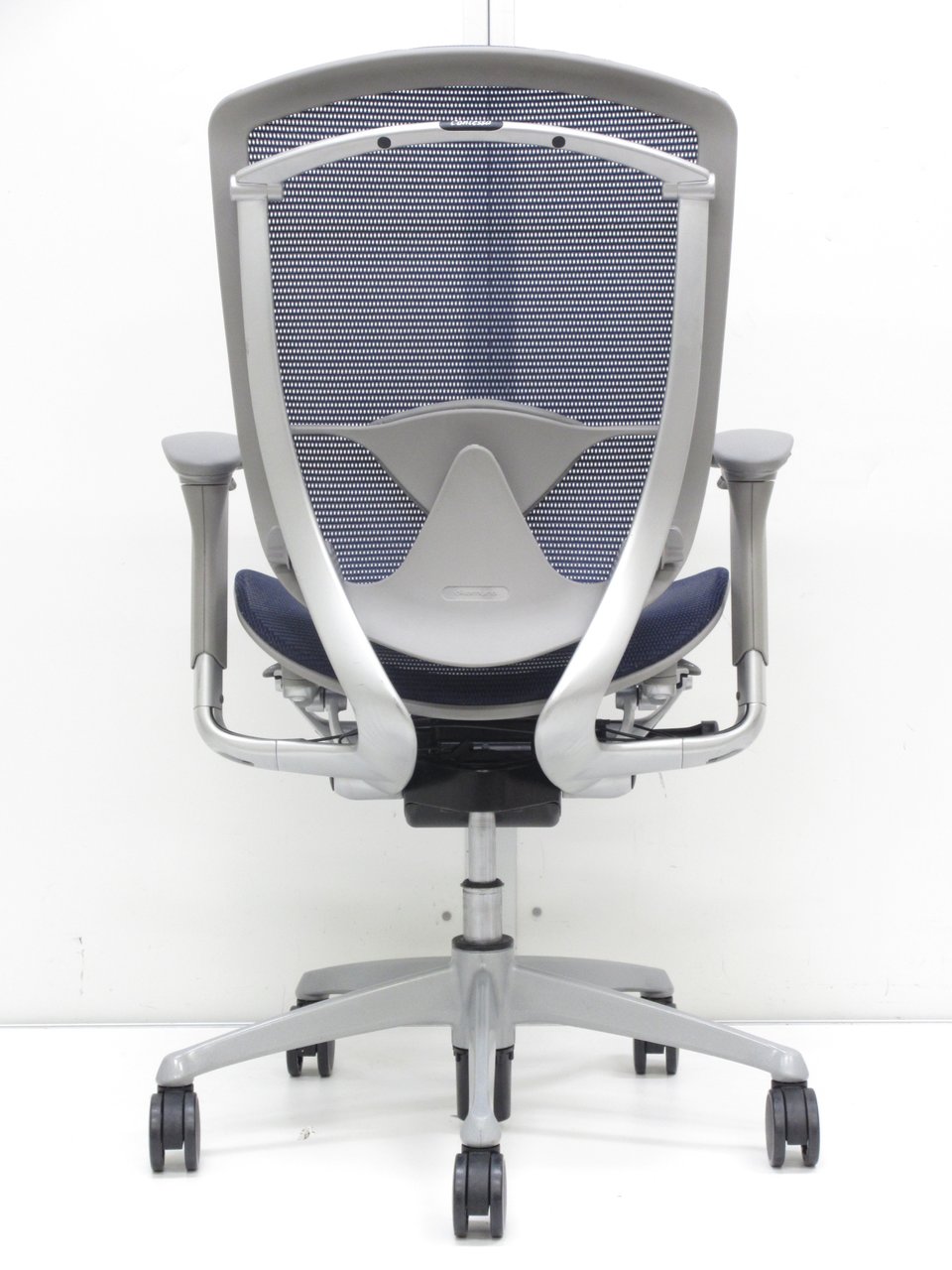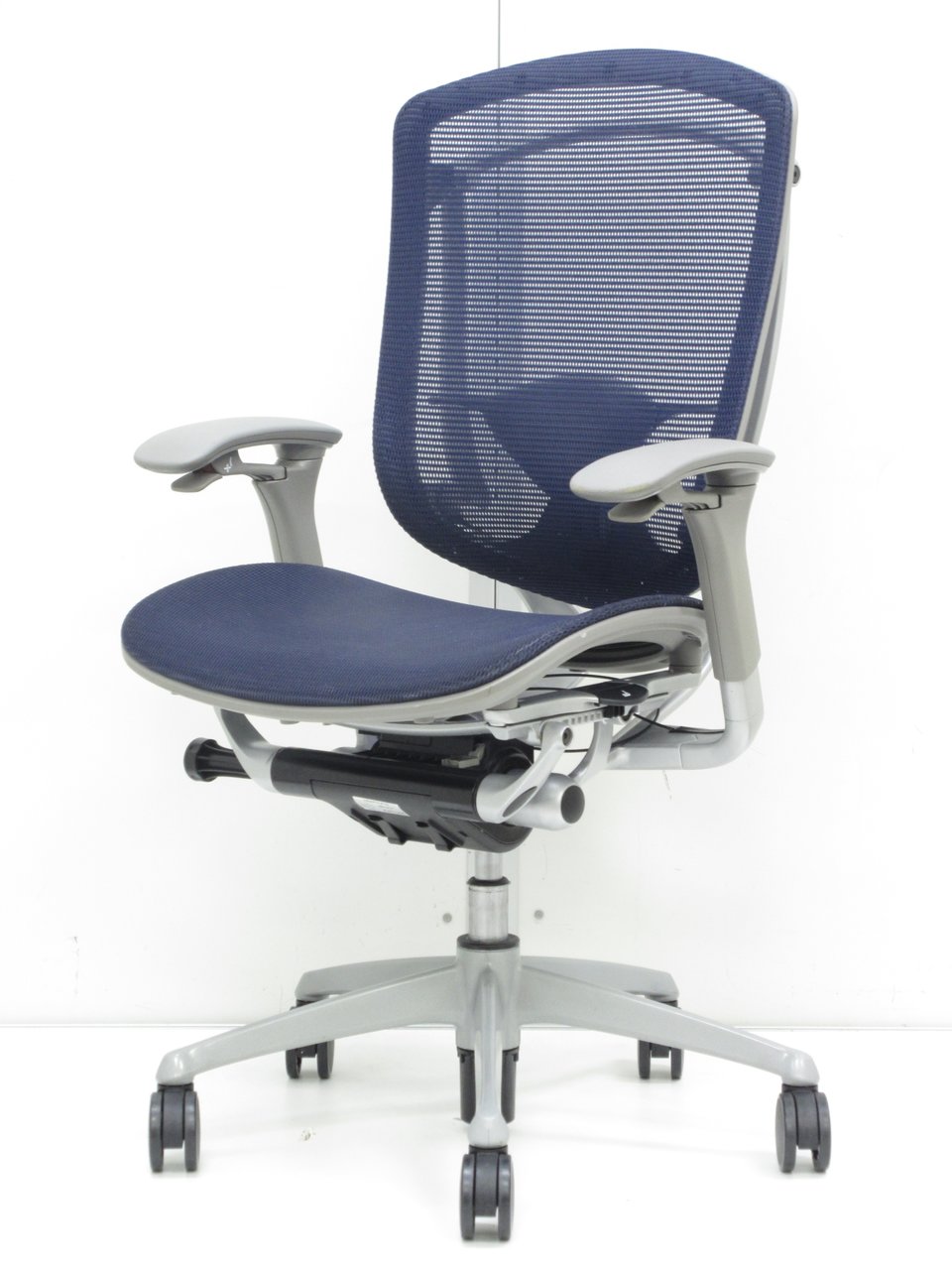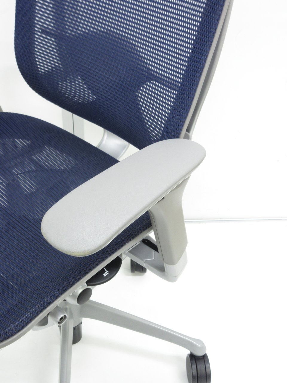 【オカムラ製の最高級チェアが残り1脚限りです!!】オフィスバスターズ 東大阪店 オカムラ製 コンテッサ シリーズ ダークブルー アジャストアーム※可動肘 背/座面メッシュ ランバー 世界で認められた革新的タスクチェア!人間工学に基づいた快適な座り心地を実現! 肘付きハイバックチェア!! 中古 外部倉庫品