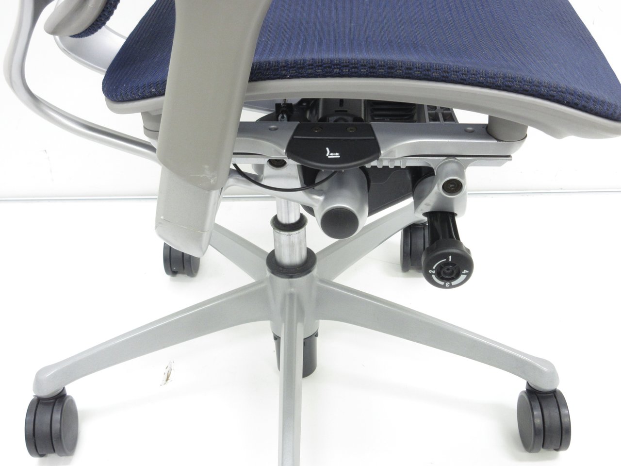 - ロッキングの強弱を調整するダイヤルがございます。体型に合わせてリクライニングの固さを座ったままで調整できます。