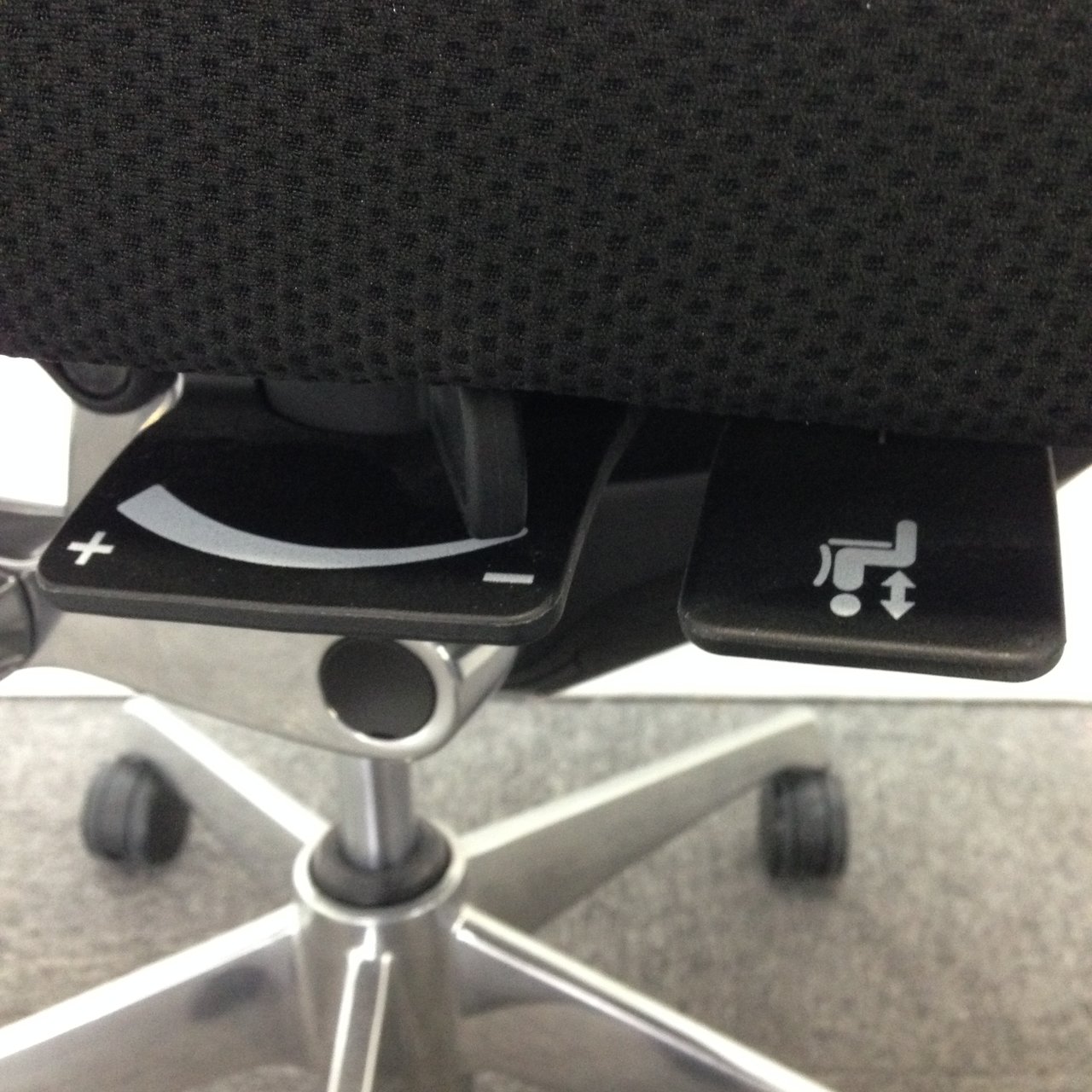 機能は上下昇降・ロッキング・リクライニング反発強弱設定・可動肘など