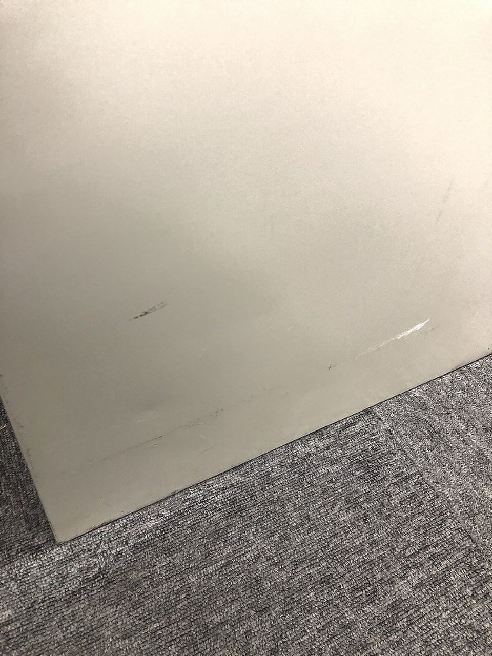 - あり黄ばみ・変色が広い範囲にうっすらある、、広い範囲にある。(例、天板、正面、背部、サイド部分にある。)