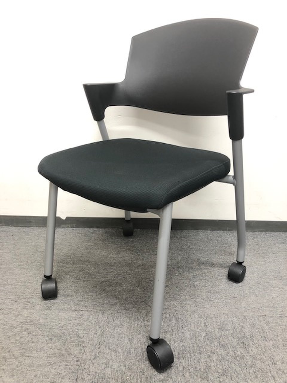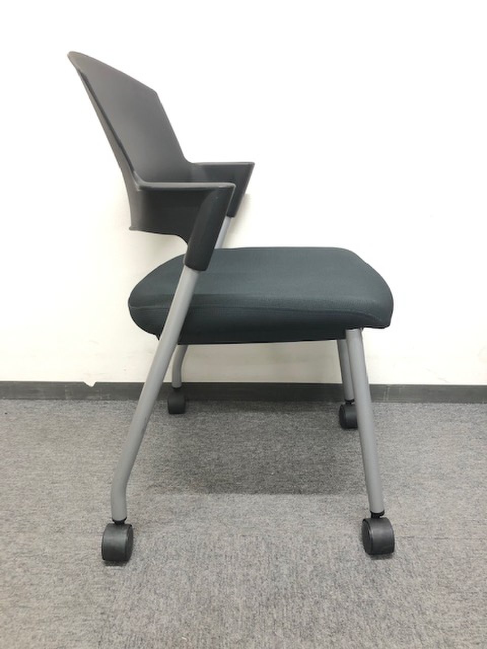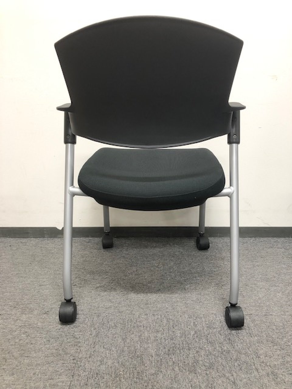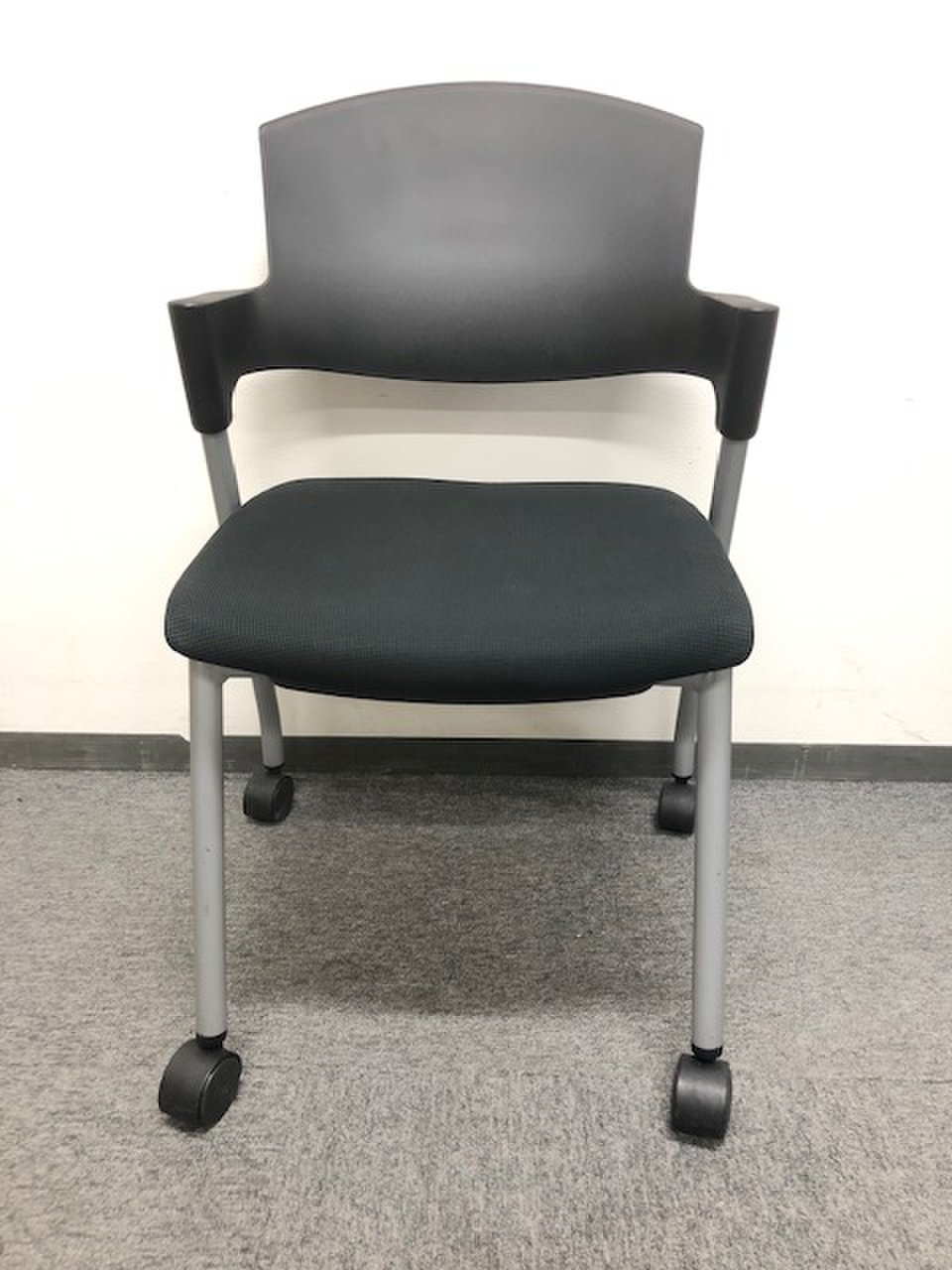 [4脚セット]ブラックのキャスター付きミーティングチェア[会議室・休憩室]- 新大阪店