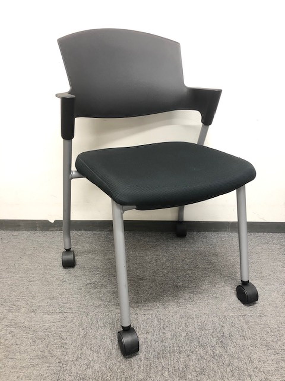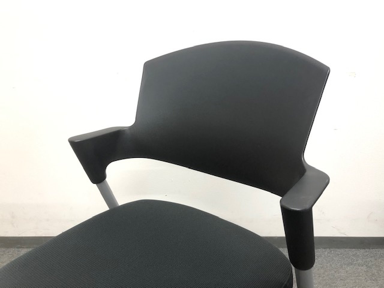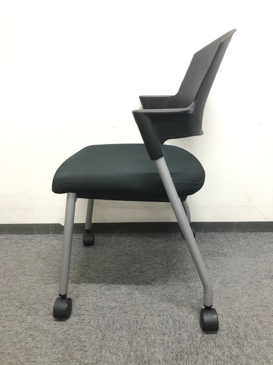 【シンプルスマートなスタッキングチェア!分厚いクッションで長時間でも快適な座り心地!】■スタッキングチェア 肘付ミーティングチェア ■固定肘 ■キャスター付 ■ブラック ■背面樹脂/コクヨ(KOKUYO/プロッティ