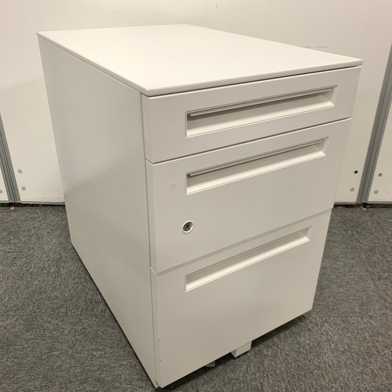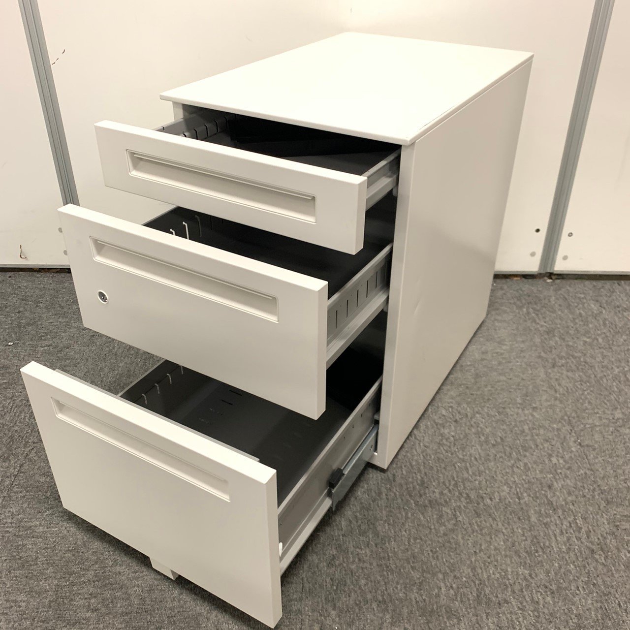 - 一部不具合ありその脇机・ワゴンの本来の効用を果たすための機能以外の一部が使用不可な状態。(例、引出が開閉しづらい、 キャスターロック機能使用不可、ラッチ不良 等がある。)
