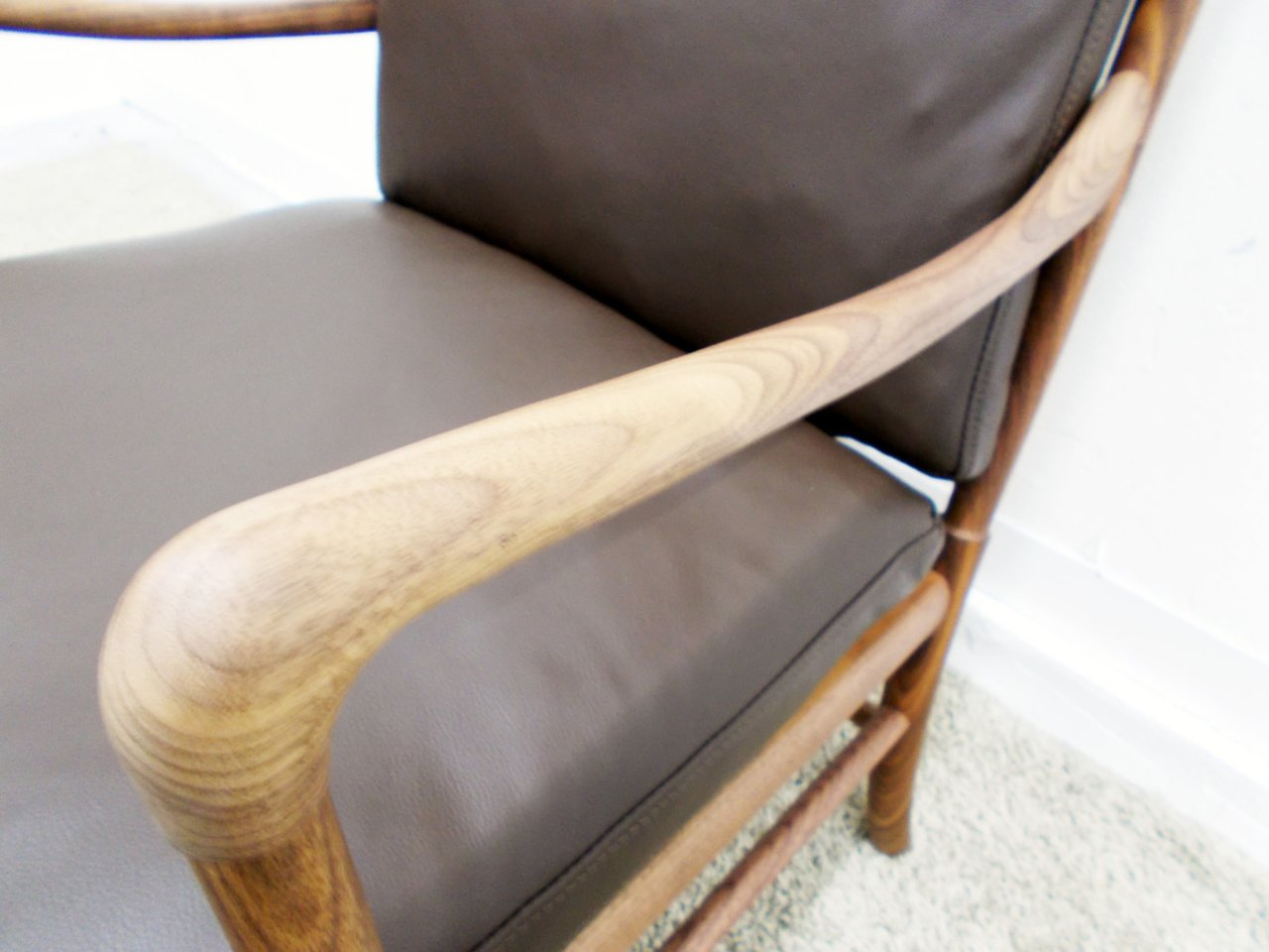 モダンでありながら1700年代の英国家具、コロニアル時代に影響を受けた細い優雅なラインが特徴となっています。ヴァンシャーは、この時代の家具が持つ格式と優雅さを再現しつつ、現代にマッチしたモダンなデザインを試みたのです。家具デザインにおいてオーレ・ヴァンシャが追求してきたのは、軽快で優美なフォルム。エレガントにカーブを描き、流れるように前脚と一体になるアームを持つ椅子が度々デザインされていて、その一例が「コロニアルチェア」です。クラシックさとモダンさを兼ね備えた、オーレ・ヴァンシャの代表作といえるアームチェアです。