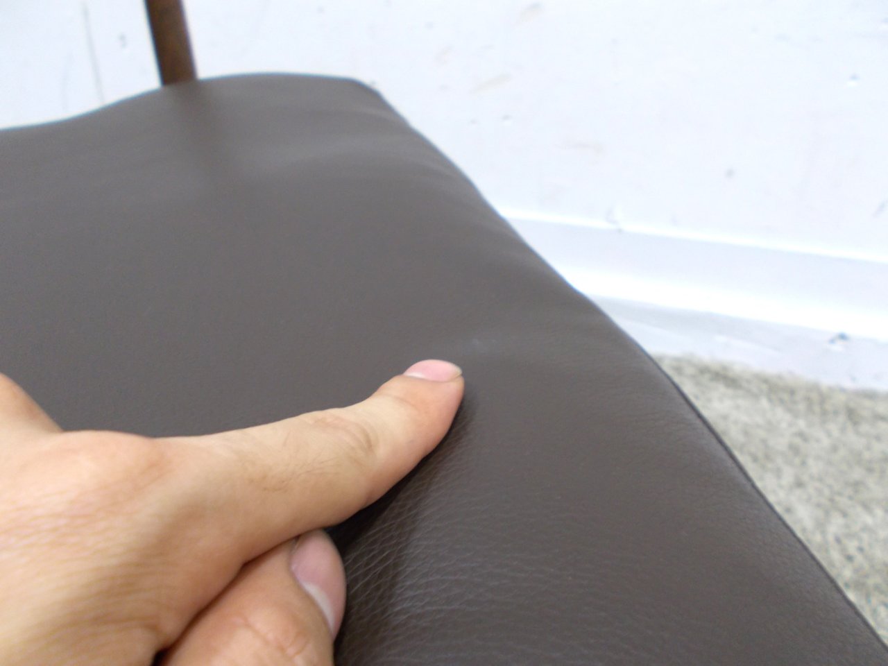 - あり黄ばみ・変色が広い範囲にうっすらある、または濃い黄ばみ・変色が一部ある。(例、座面・背もたれ、脚部等にある。)