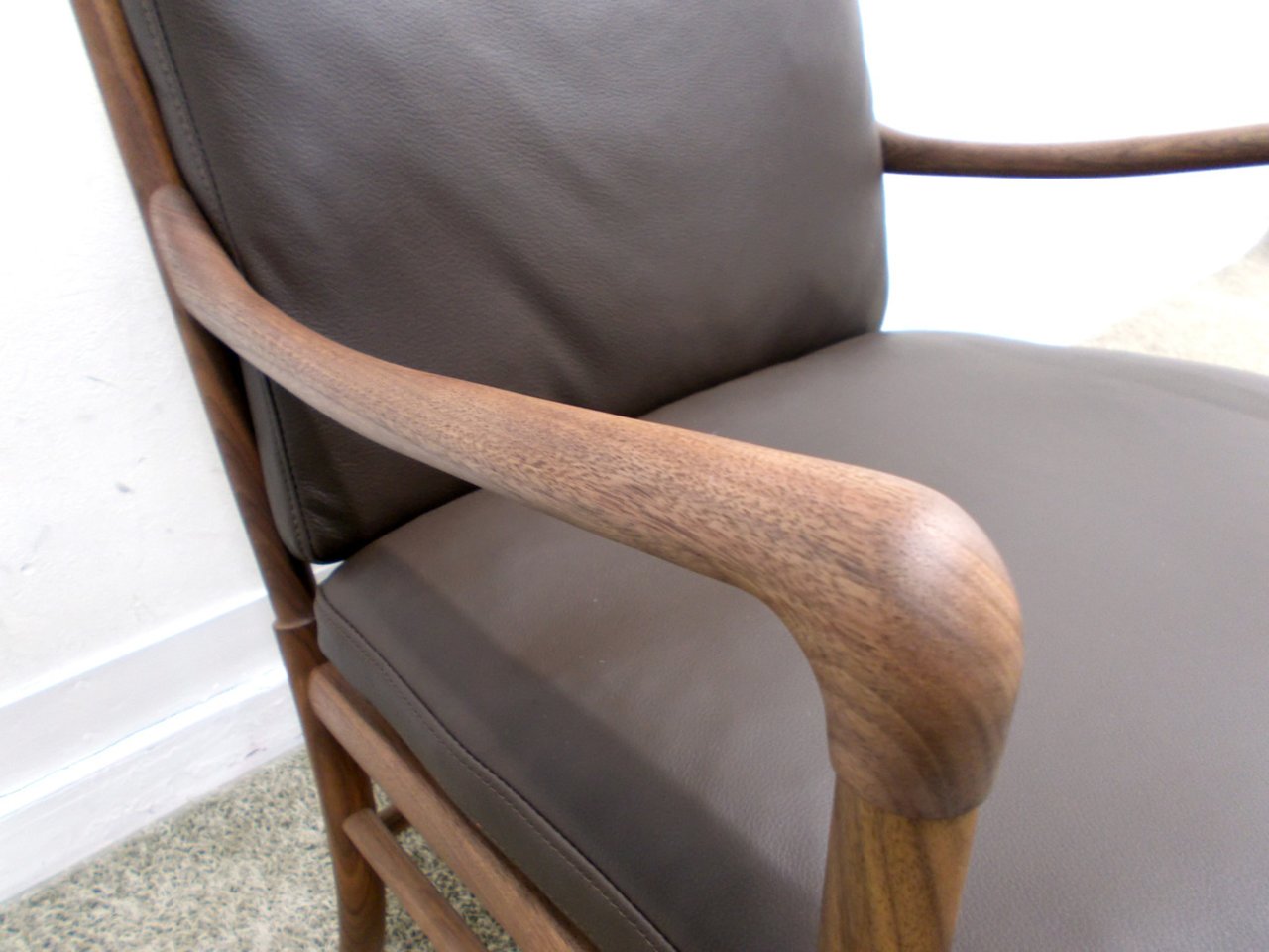 モダンでありながら1700年代の英国家具、コロニアル時代に影響を受けた細い優雅なラインが特徴となっています。ヴァンシャーは、この時代の家具が持つ格式と優雅さを再現しつつ、現代にマッチしたモダンなデザインを試みたのです。家具デザインにおいてオーレ・ヴァンシャが追求してきたのは、軽快で優美なフォルム。エレガントにカーブを描き、流れるように前脚と一体になるアームを持つ椅子が度々デザインされていて、その一例が「コロニアルチェア」です。クラシックさとモダンさを兼ね備えた、オーレ・ヴァンシャの代表作といえるアームチェアです。