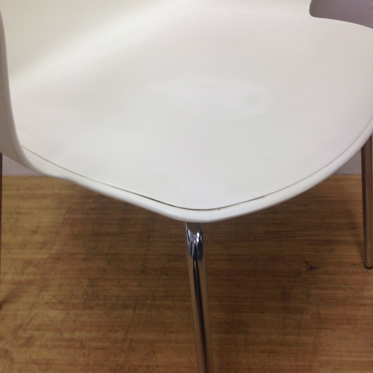 - かなり強い濃い黄ばみ・変色が商品全体にある。(例、座面・背もたれ、脚部等にある。)