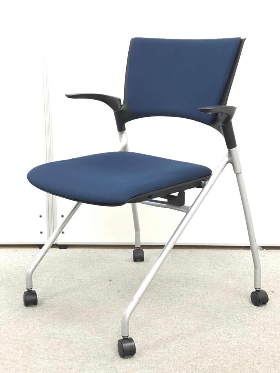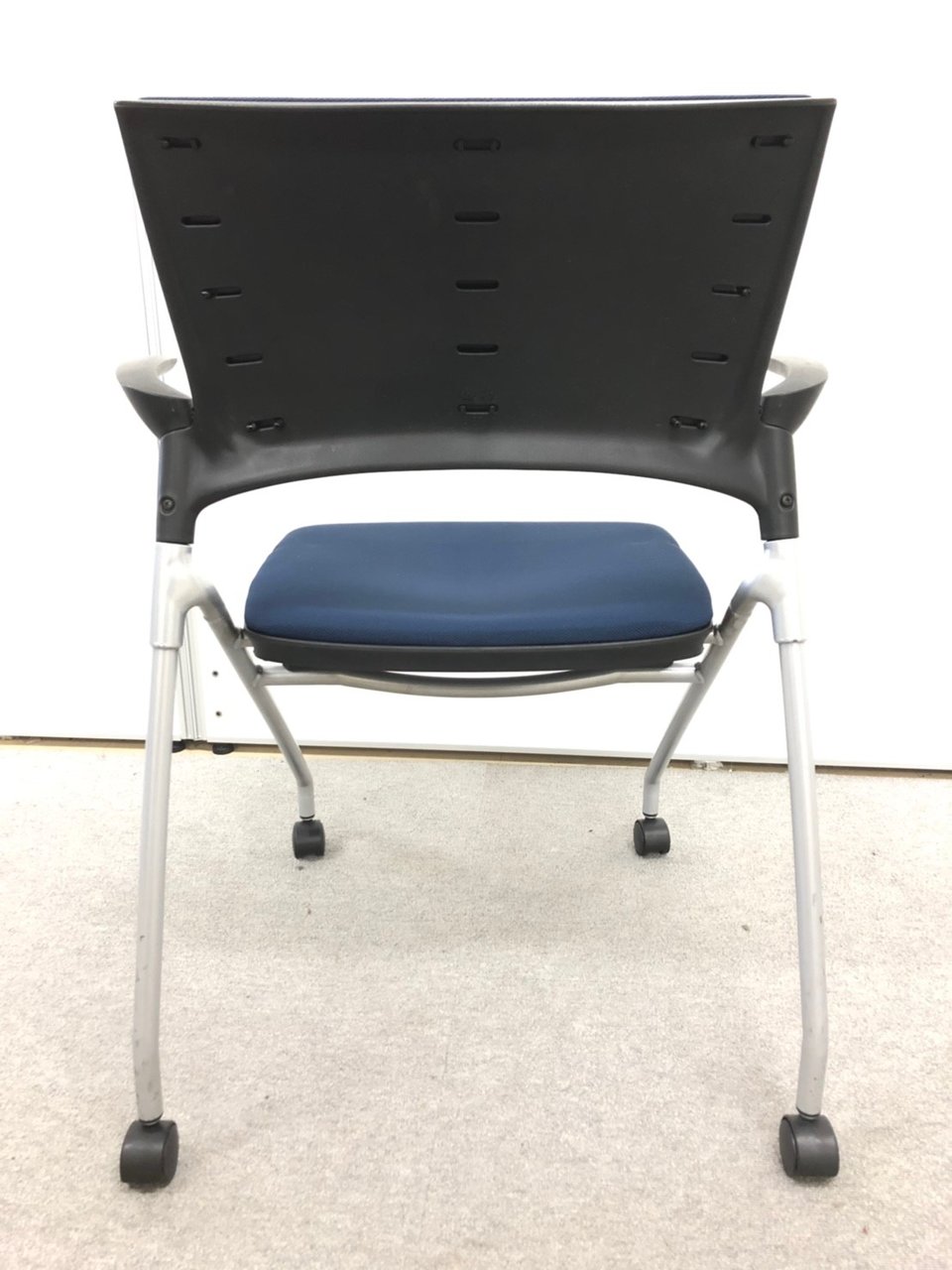 【定価6万円】【ソフトベンディングシェルが背を優しく受け止める!】■イトーキ(ITOKI) マノスチェア(MANOSS) 肘無し スタッキングチェア ミーティングチェア ■背パッド付 ■キャスター脚 ■ブルー
