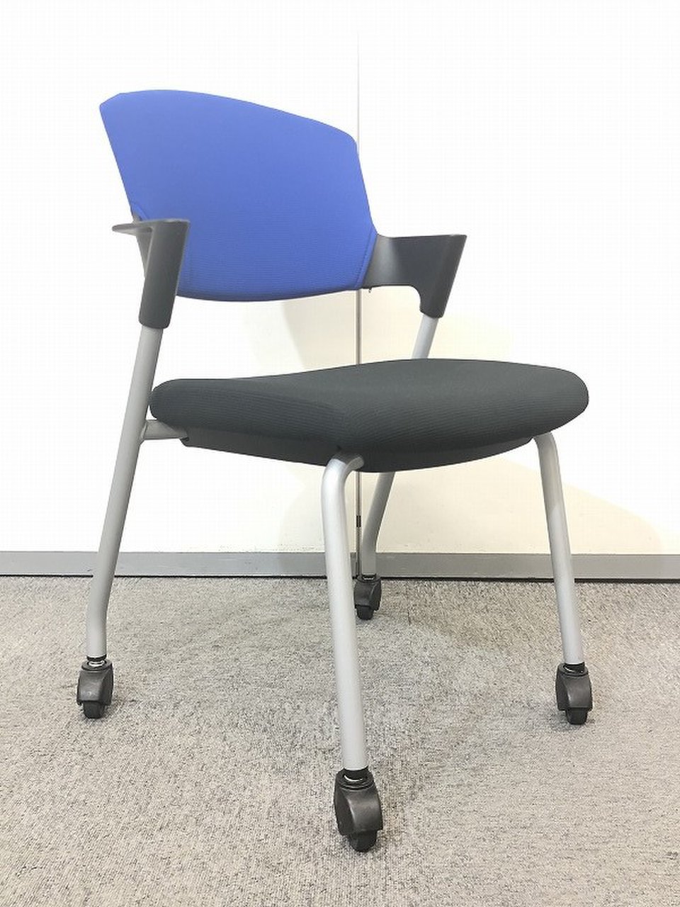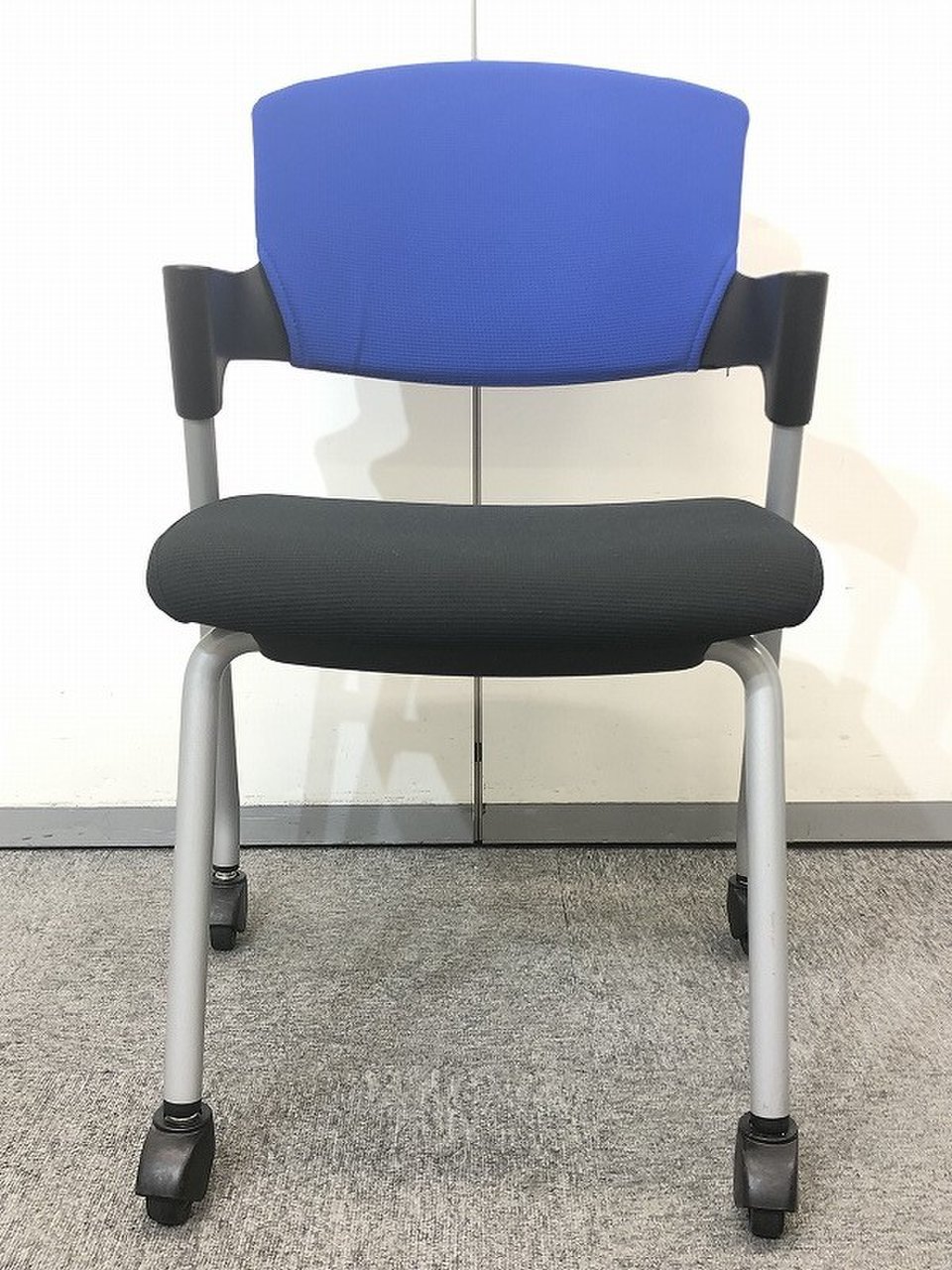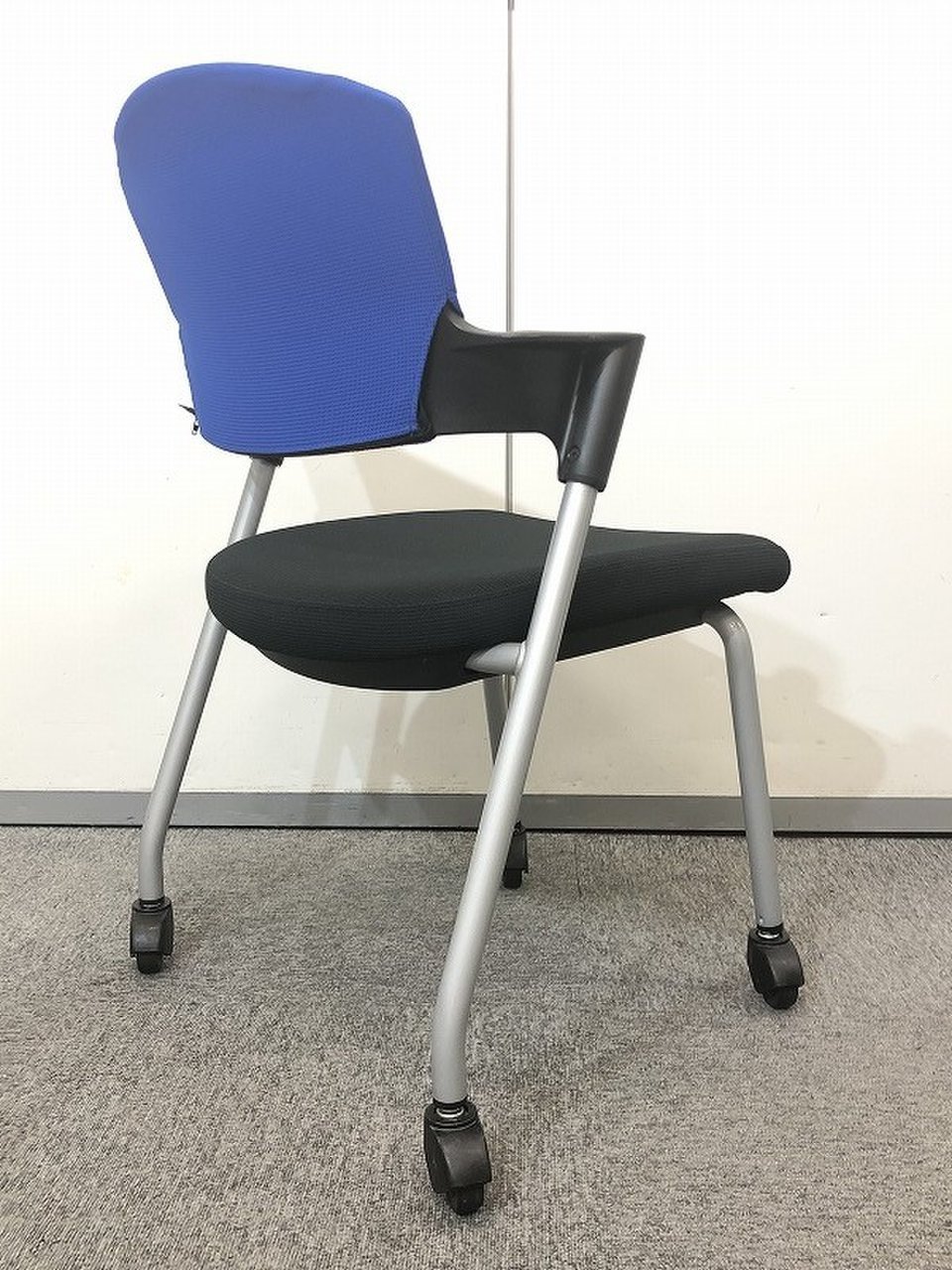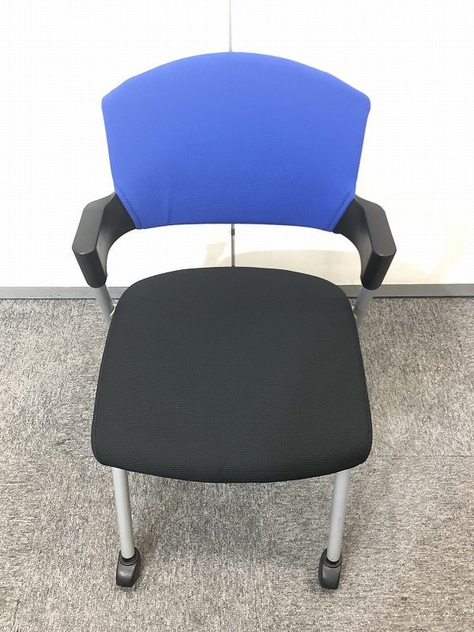 【シンプルスマートなスタッキングチェア!分厚いクッションで長時間でも快適な座り心地!】■コクヨ(KOKUYO)製 プロッティ (Protty) 肘付 ミーテイングチェア スタッキングチェア ■固定肘 ■ブルー×ブラック ■背面ヌードタイプ