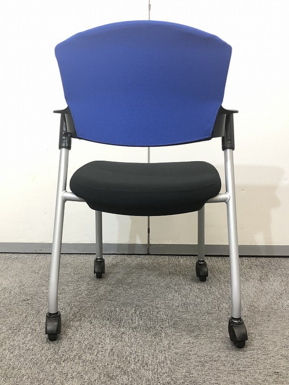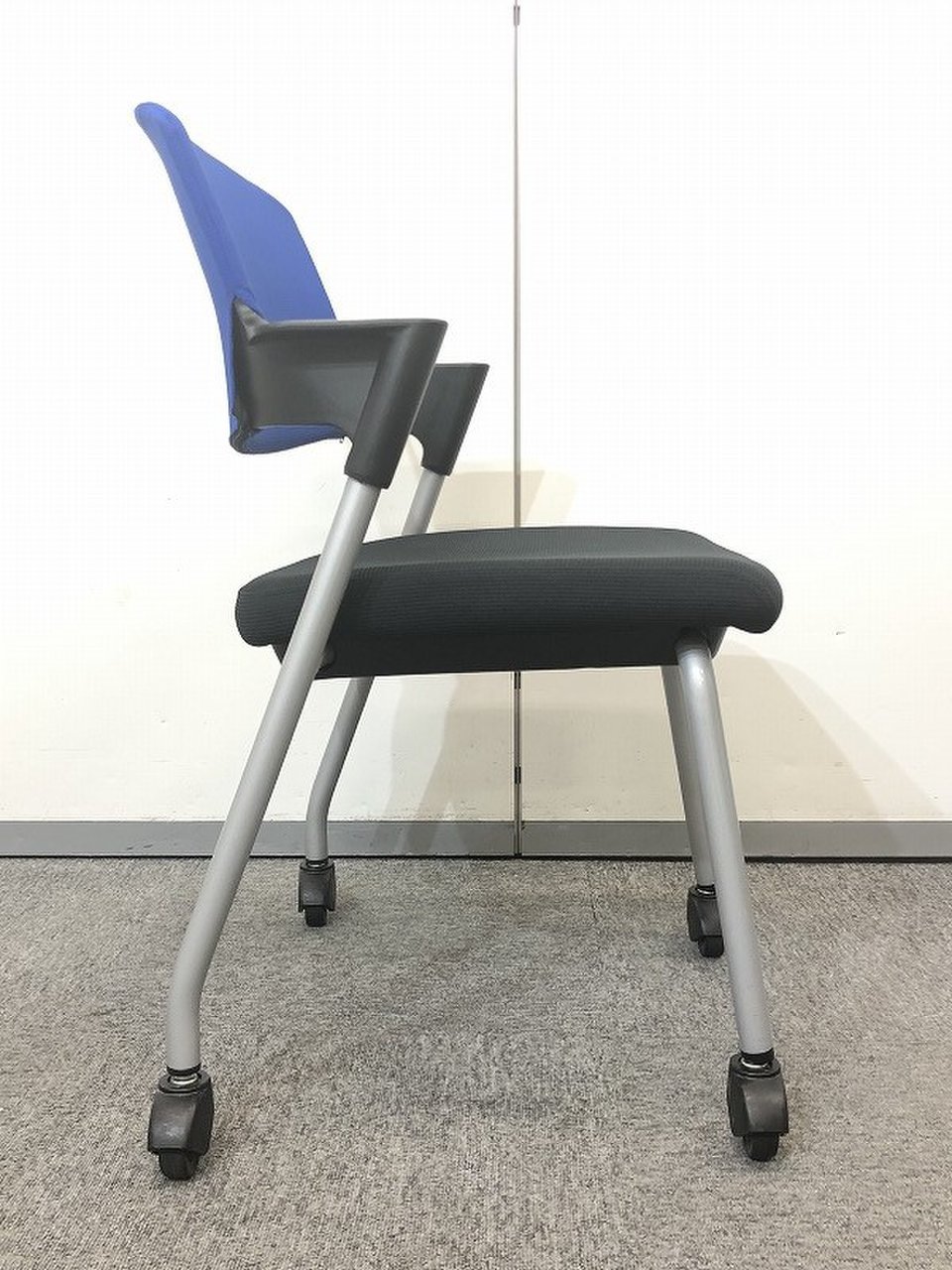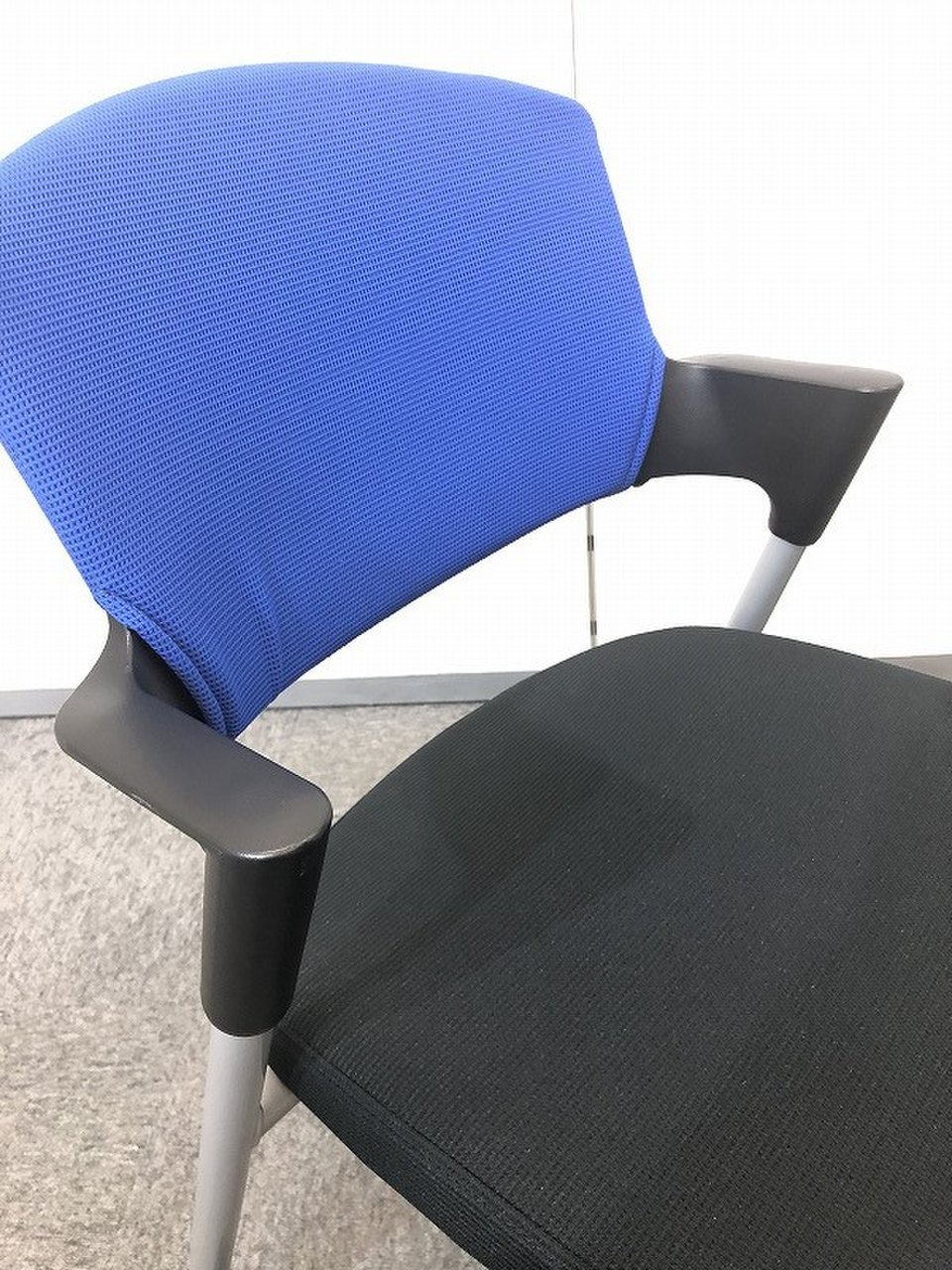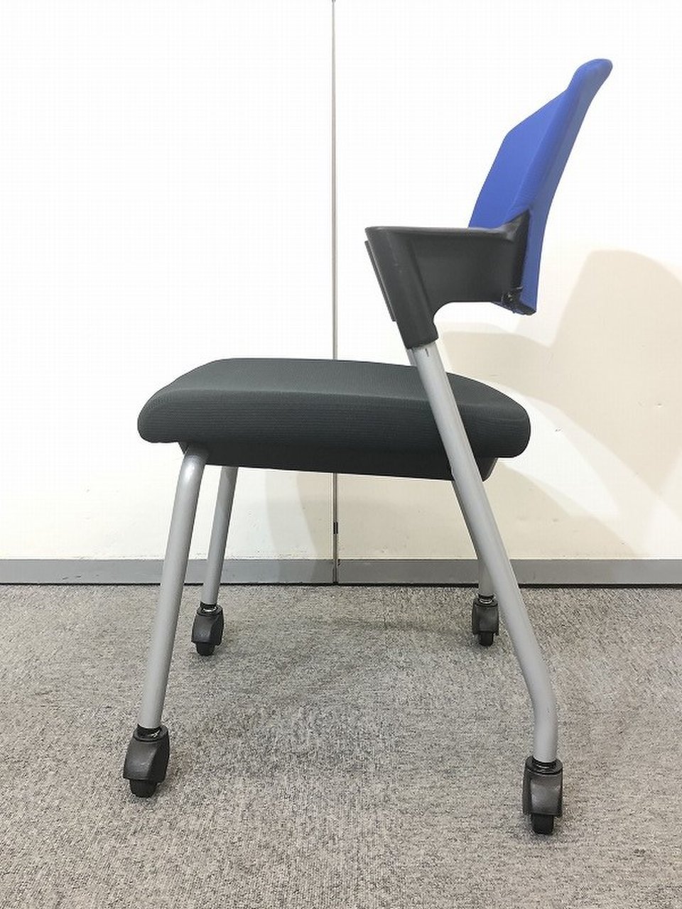 【シンプルスマートなスタッキングチェア!分厚いクッションで長時間でも快適な座り心地!】■コクヨ(KOKUYO)製 プロッティ (Protty) 肘付 ミーテイングチェア スタッキングチェア ■固定肘 ■ブルー×ブラック ■背面ヌードタイプ