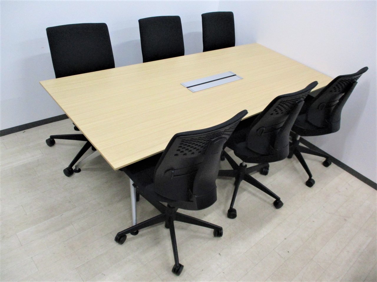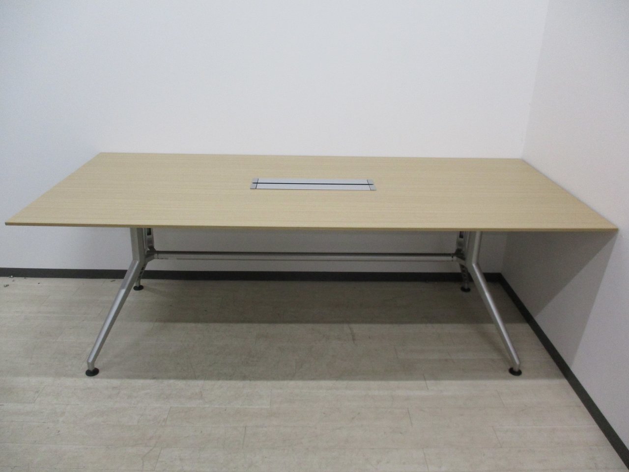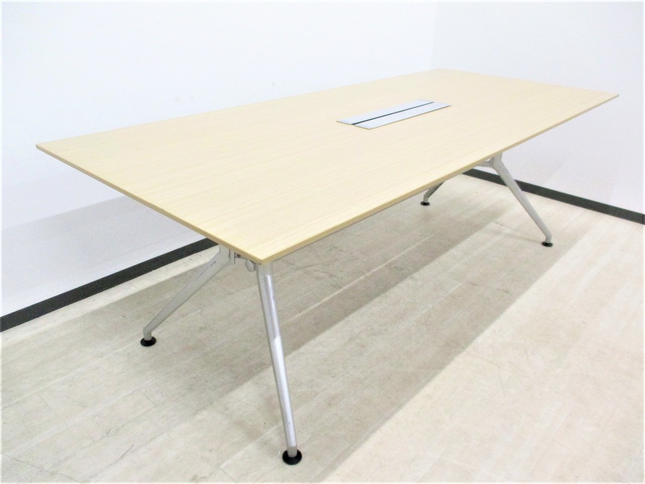 【会議室だけでなく休憩室でも!6~8名様対応・大型テーブル】■イトーキ(ITOKI) DDDシリーズ ミーティングテーブル 会議テーブル 幅2400×奥行900mm ■木目ナチュラル天板 脚シルバー色 オフィスバスターズ東大阪店