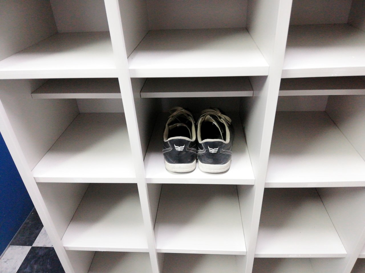 24人分の収納があり、一つの枠には内履きを入れる棚がついているので、