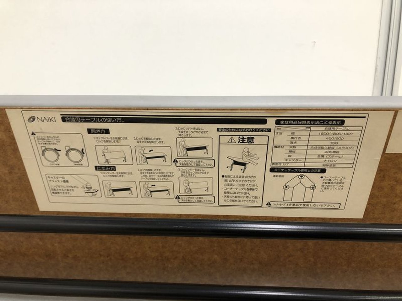 - 一部不具合あり天板歪み、アジャスター無し、キャスター使用不可ようなそのテーブルの本来の効用を果たすための機能以外の一部が使用不可な状態。(例、キャスターロッ ク機能使用不可、棚板無し等がある。)