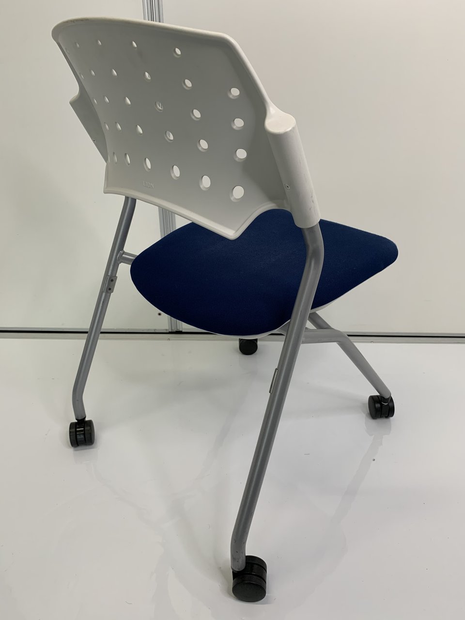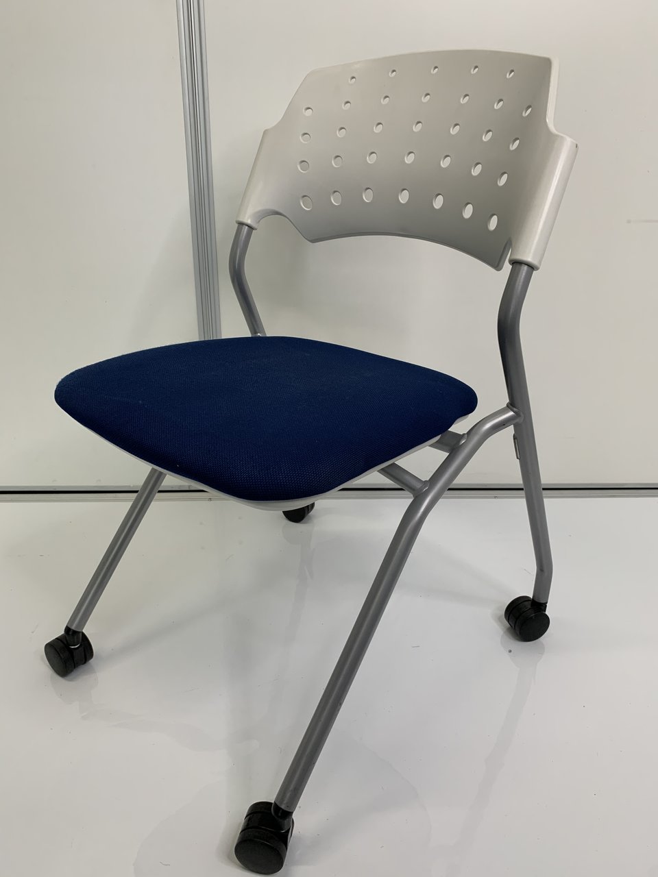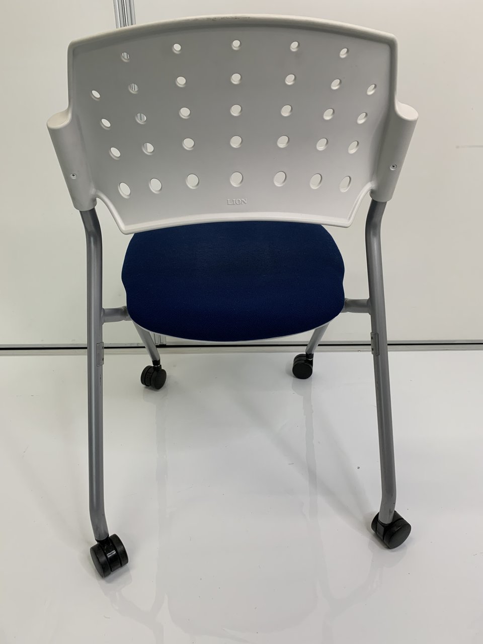 お得な4脚セット! ライオン製のネスティングチェア(平行収納できます!) ブルーの定番の会議用チェアです!- 在庫数