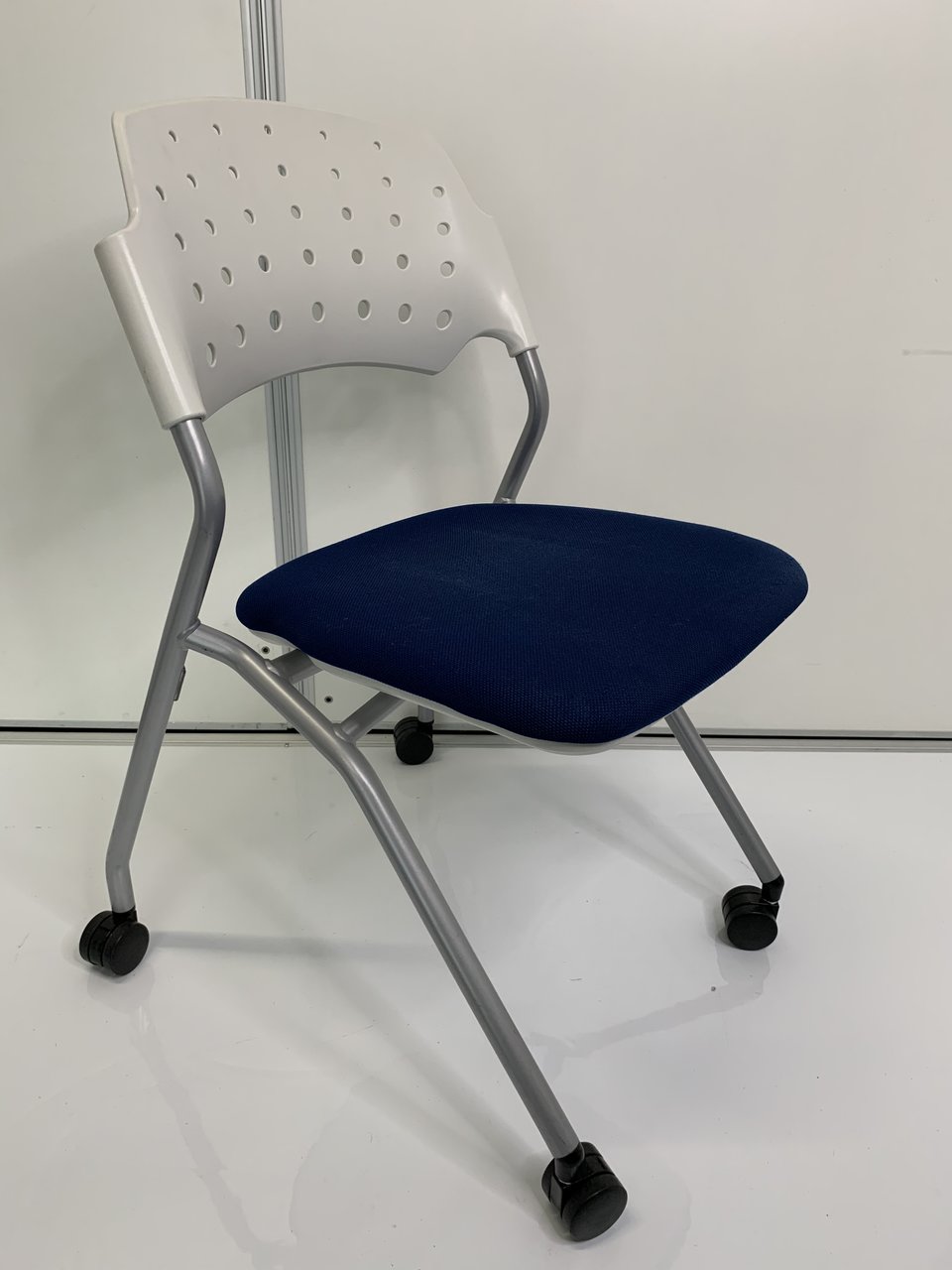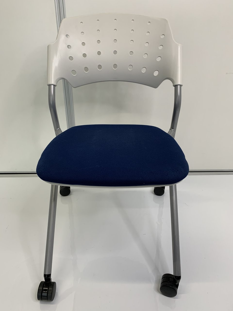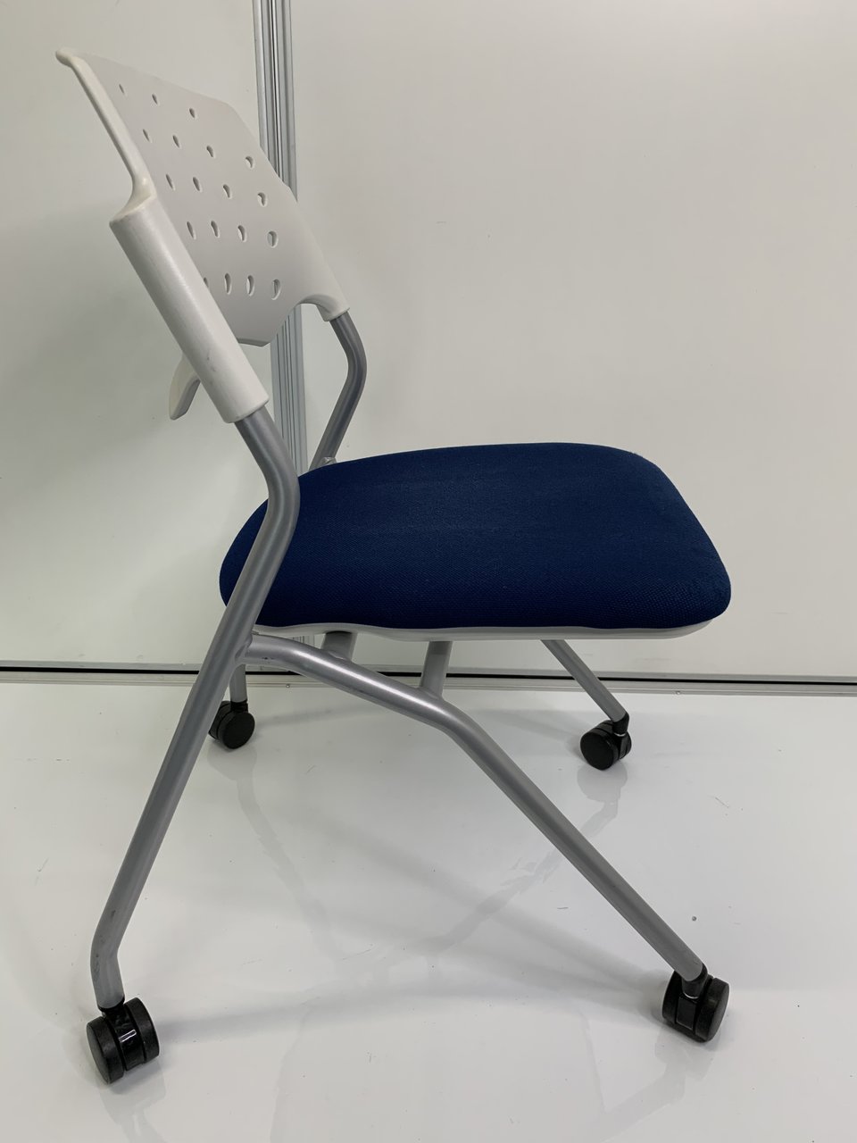 お得な4脚セット! ライオン製のネスティングチェア(平行収納できます!) ブルーの定番の会議用チェアです!- 在庫数