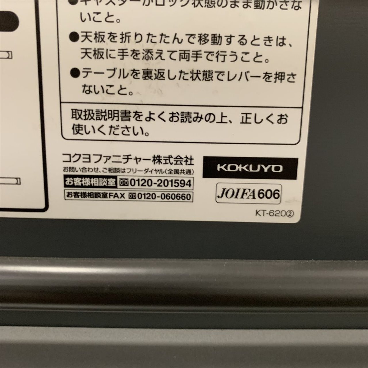 - 壊れている天板歪み、アジャスター無し、キャスター使用不可のようにそのテーブルの本来の効用を果たすための機能に不具合がある。