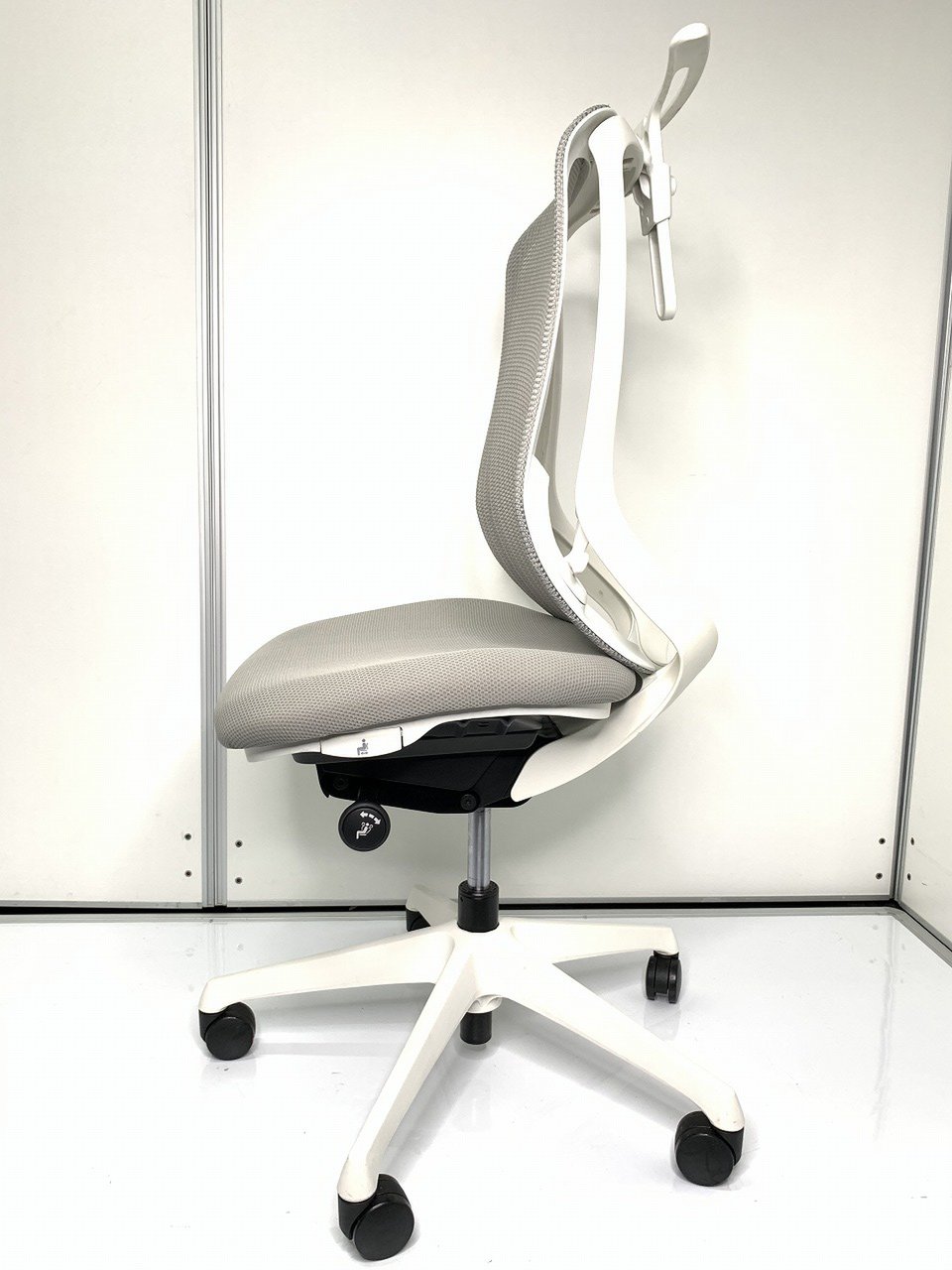 - 座面右下のダイヤル操作で、リクライニングの強弱調整が行えます。これまでのダイヤル式よりも、少ない回転数で、最弱?最強の調整が可能です。