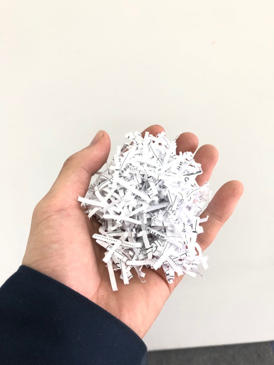 縦切り横切りを一度に行う方式で、約2.5×30㎜の裁断くずは