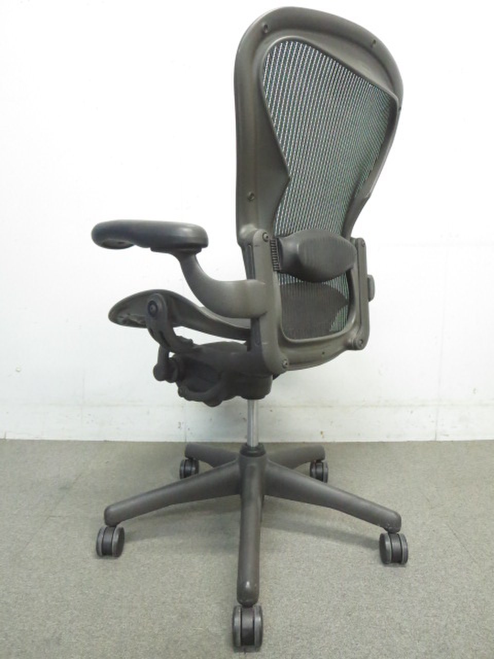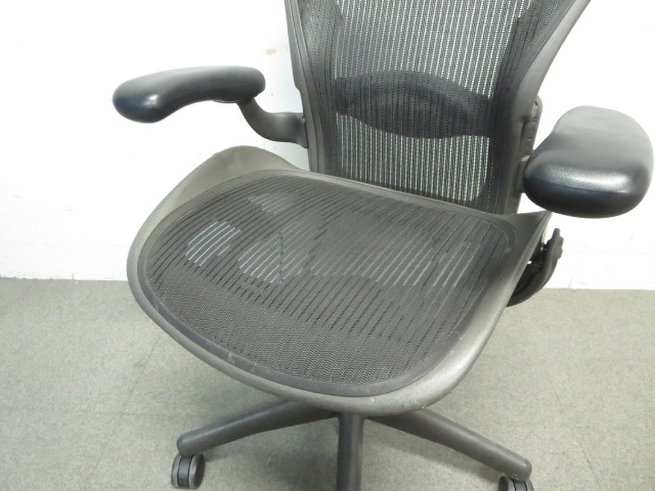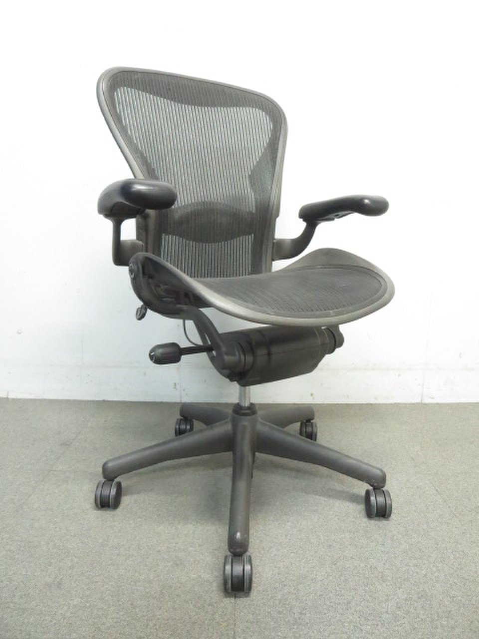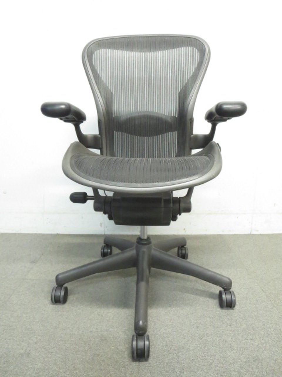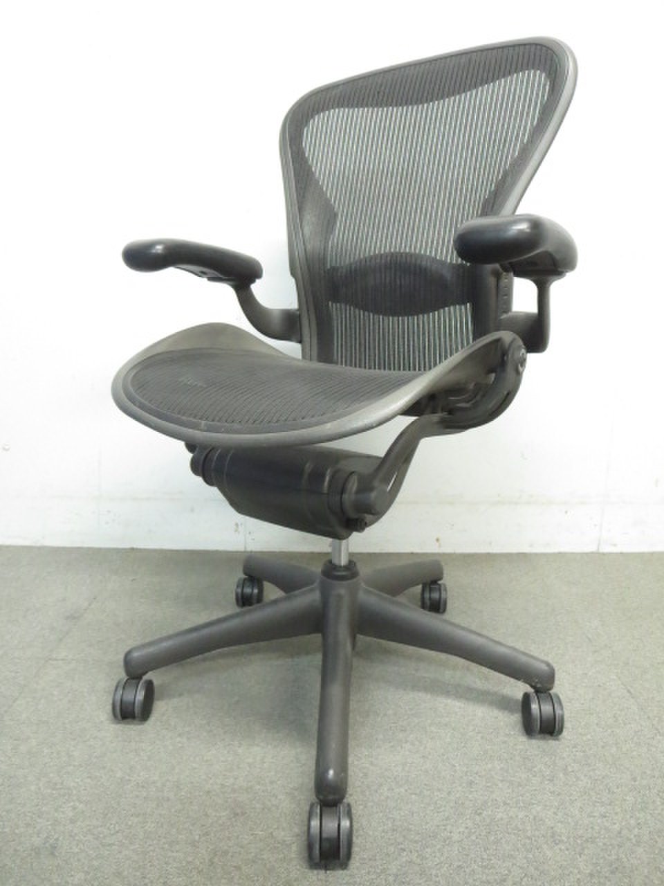 【★状態イマイチのためお安く!】■ハーマンミラー製 アーロンチェア Bサイズ 固定肘 ※キズあり・ランバーサポート無・昇降ガス圧弱めのためお安く!【訳あり特価品】