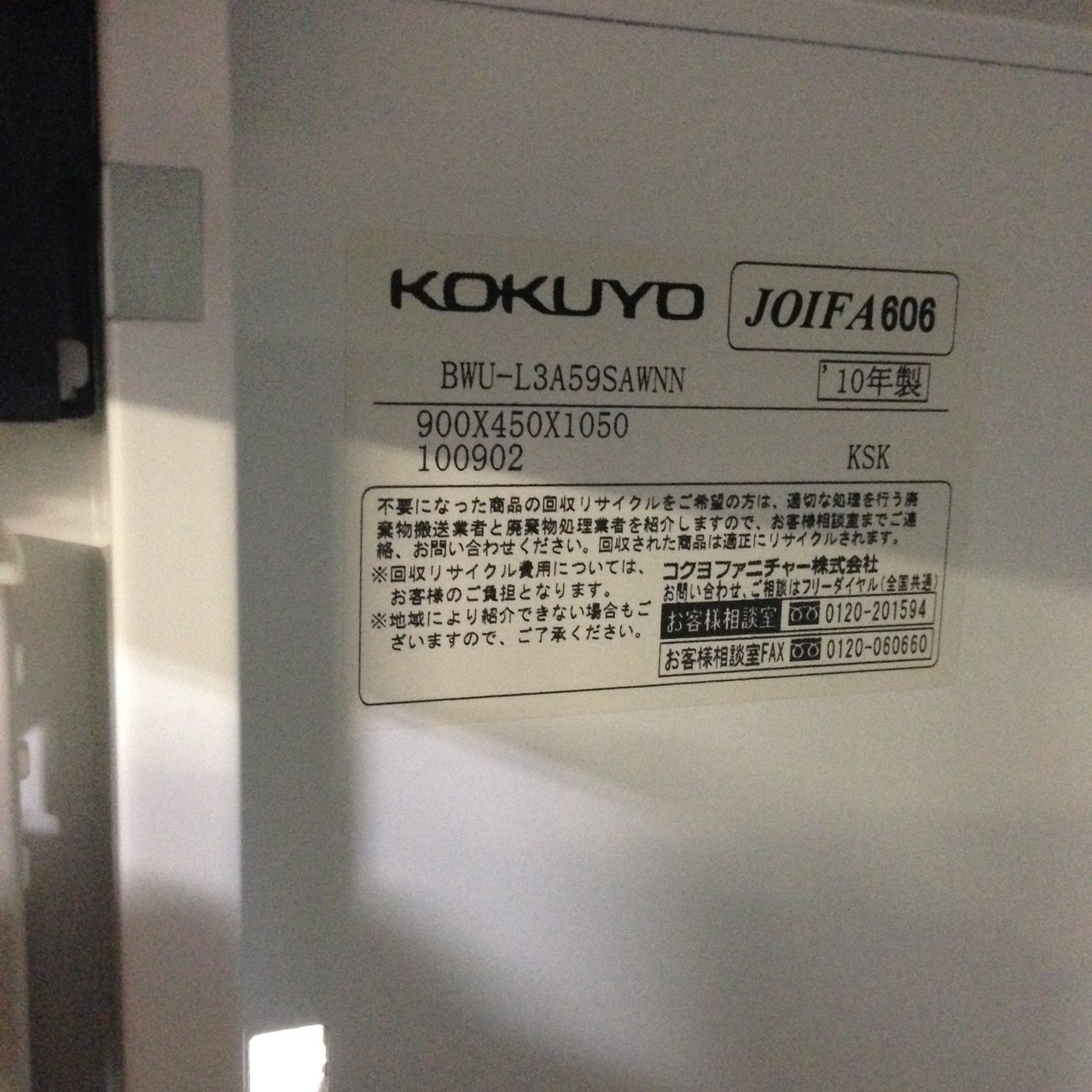 - 一部不具合ありそ引出の開閉不可、施錠不可、棚板無しといったの書庫の本来の効用を果たすための機能以外の一部が使用不可(例、扉、引出の開閉がしづらいなどがある。 )