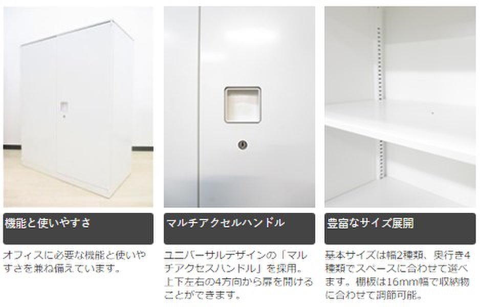 2枚引き戸書庫 オカムラ レクトライン 鍵付き シリンダー錠 ホワイト 天板無し スライド式の扉のため導線を邪魔しません