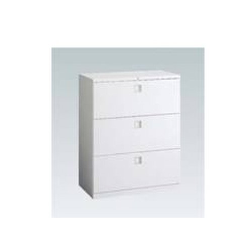 ■オカムラ(okamura)製 レクトラインシリーズ 3段ラテラル ローキャビネット ■天板・ベース付 ■シリンダー錠 ■ホワイト ■収納力抜群【弊社使用欄:A01037187】【SN】