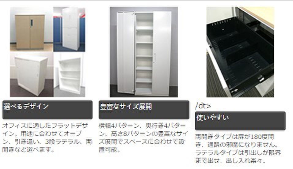 - オフィスに適したフラットデザイン。用途に合わせてオープン、引き違い、3段ラテラル、両開きなど選べます。