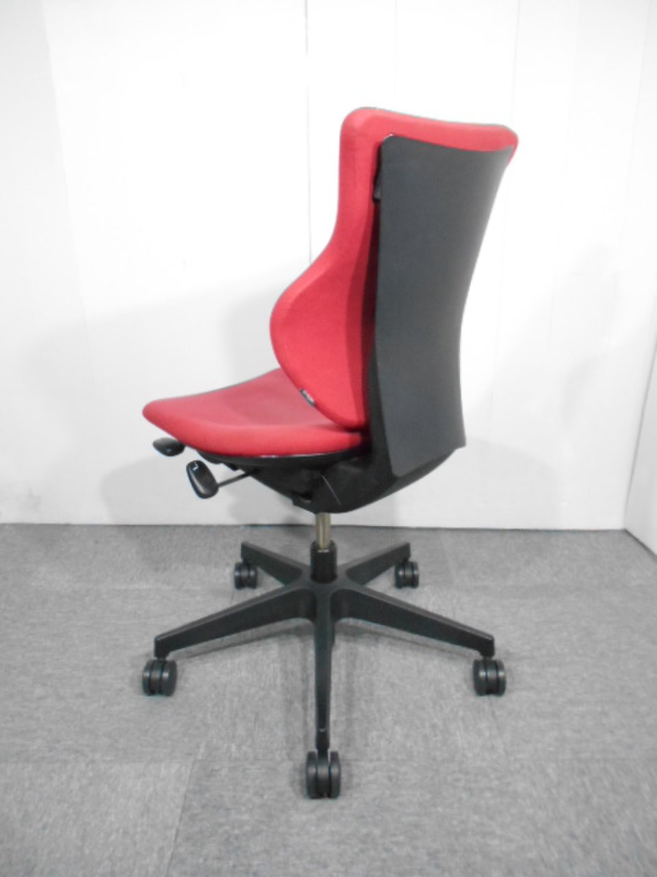- 女性の作業姿勢に多く見られる2つの姿勢を、美しく支える背もたれ形状です。後傾しても背のラインを崩しません。