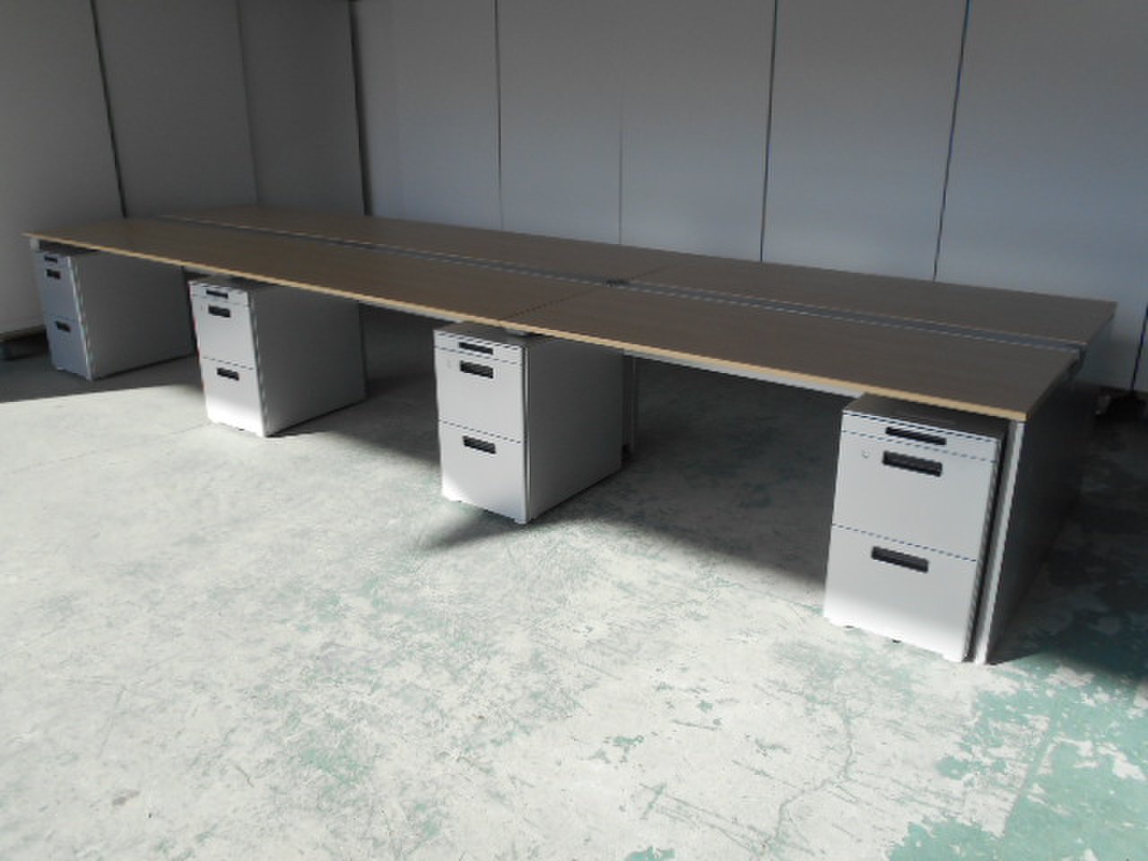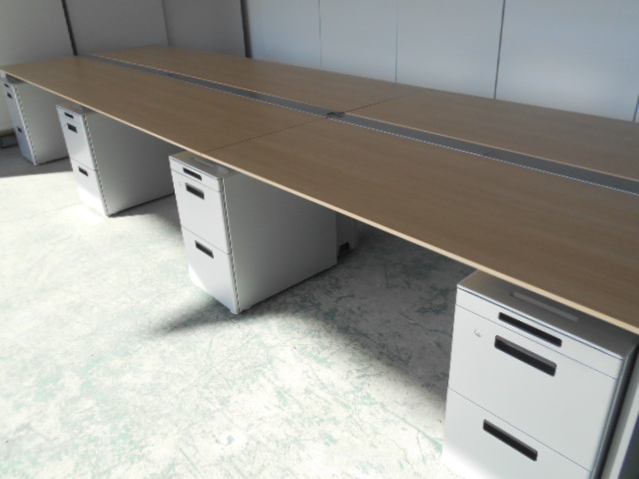 【倉庫在庫品】流行りのフリーアドレスデスク オカムラ プロユニットフリーウェイシリーズ ナチュラルカラー 幅4800㎜ 奥行1400 中古家具 オフィス家具 オフィスバスターズ心斎橋店 起業 入れ替え レイアウト変更 お引っ越し 事務所開設 ※チェアは別売りとなります