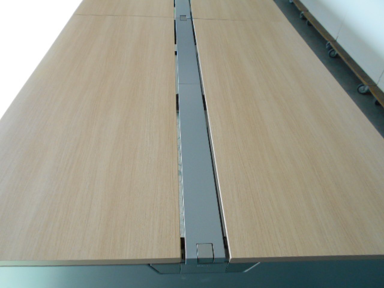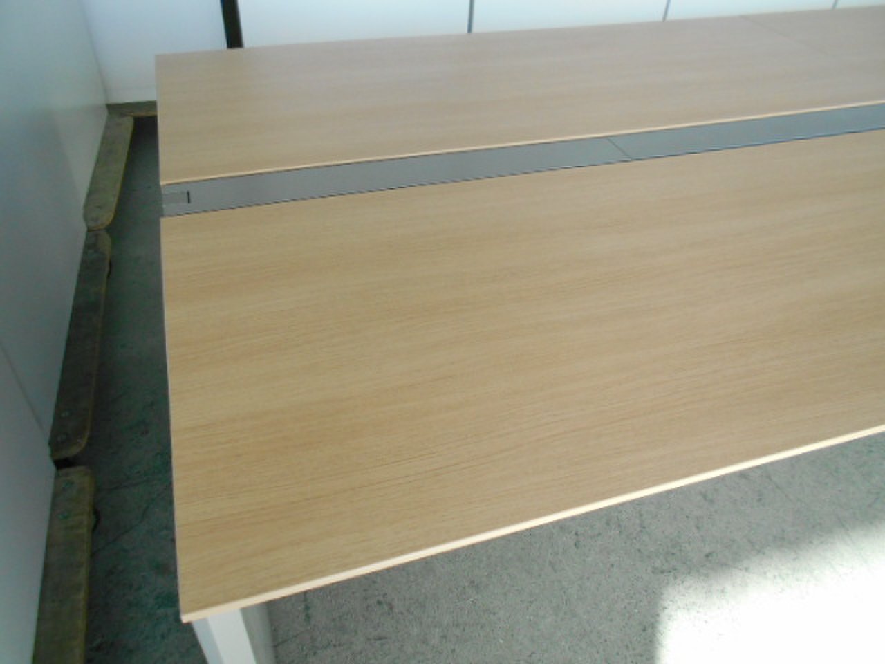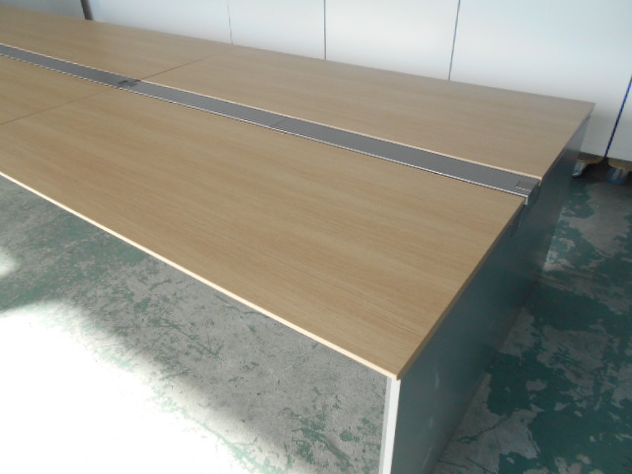 ◆関西倉庫在庫◆~オカムラ製フリーウェイシリーズフリーアドレスデスク~ナチュラル×シルバーのスタイリッシュなデスク!8~12名様用におすすめのサイズ感です!《2400㎜×700㎜天板×4枚の1セット》- 福岡博多店