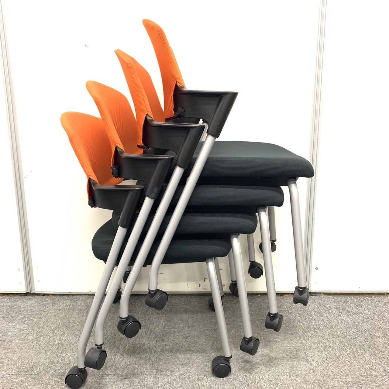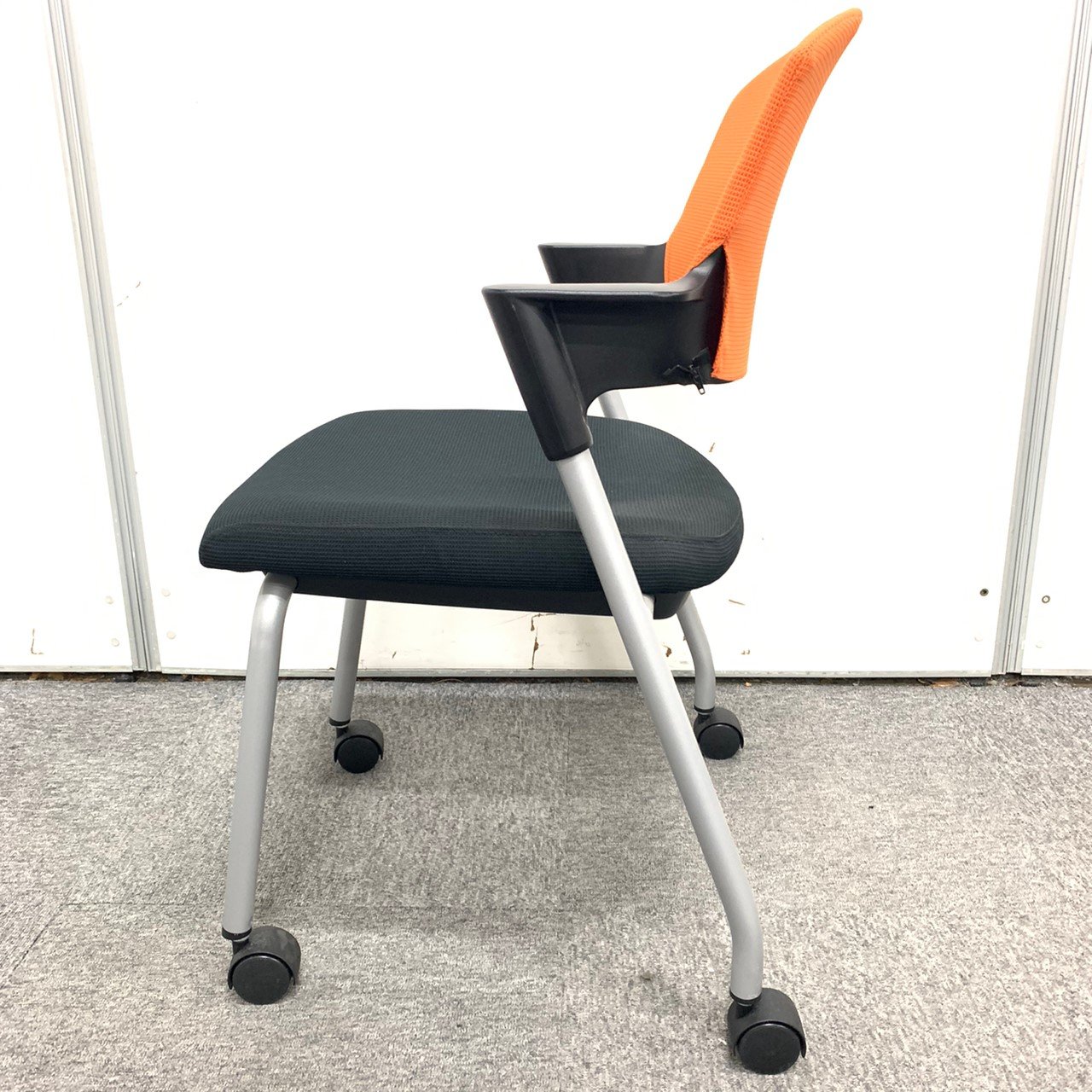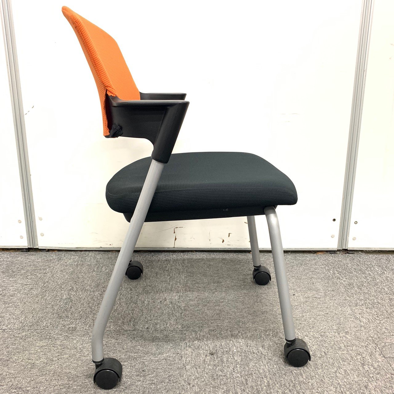 【シンプルスマートなスタッキングチェア!】■コクヨ(KOKUYO) プロッティ(Protty)チェア スタッキングチェア ミーティングチェア ■肘付き キャスター付き ■オレンジ【2505】弊社使用欄【A01018053】