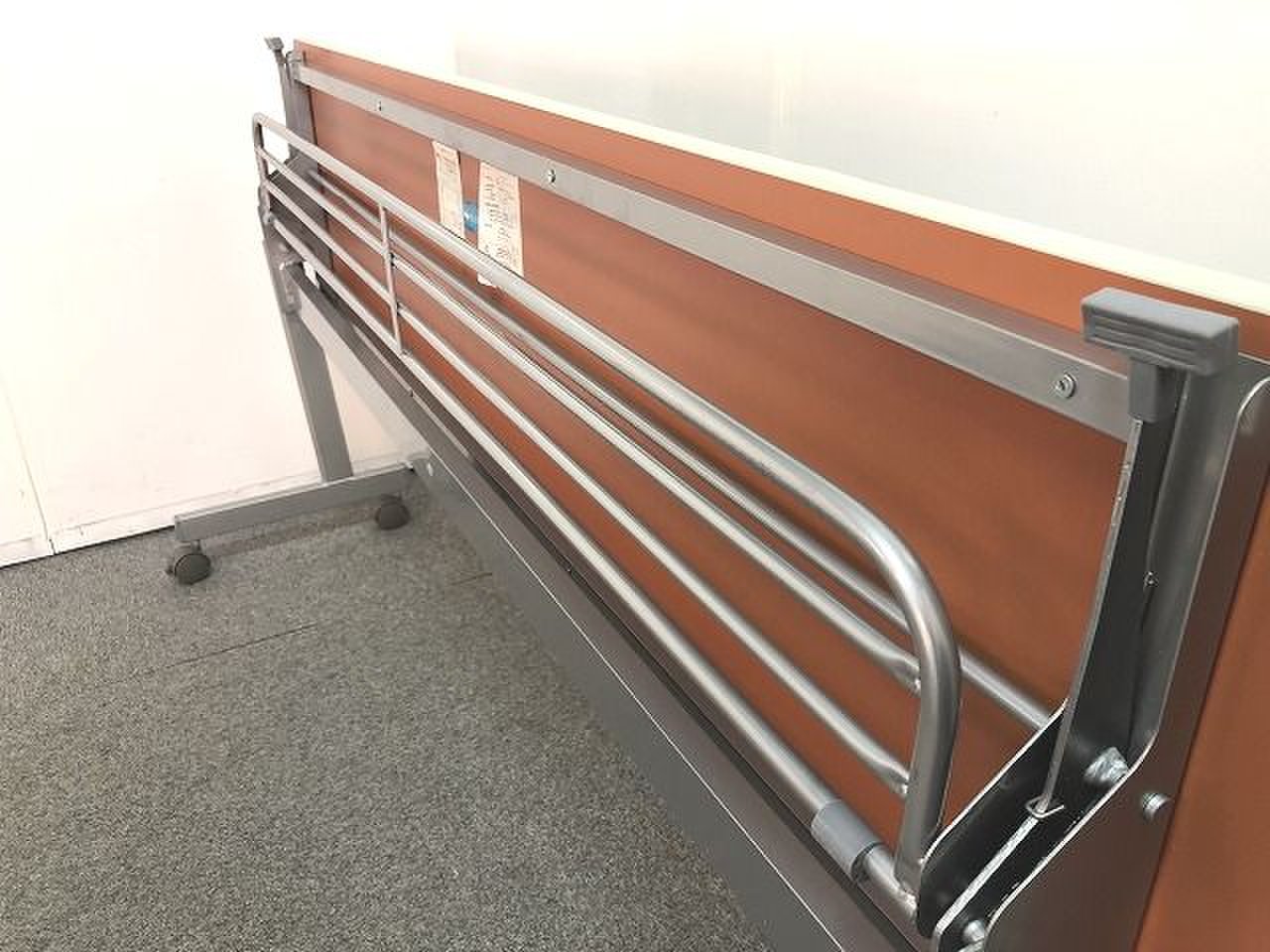 - 一部不具合あり天板歪み、アジャスター無し、キャスター使用不可ようなそのテーブルの本来の効用を果たすための機能以外の一部が使用不可な状態。(例、キャスターロッ ク機能使用不可、棚板無し等がある。)