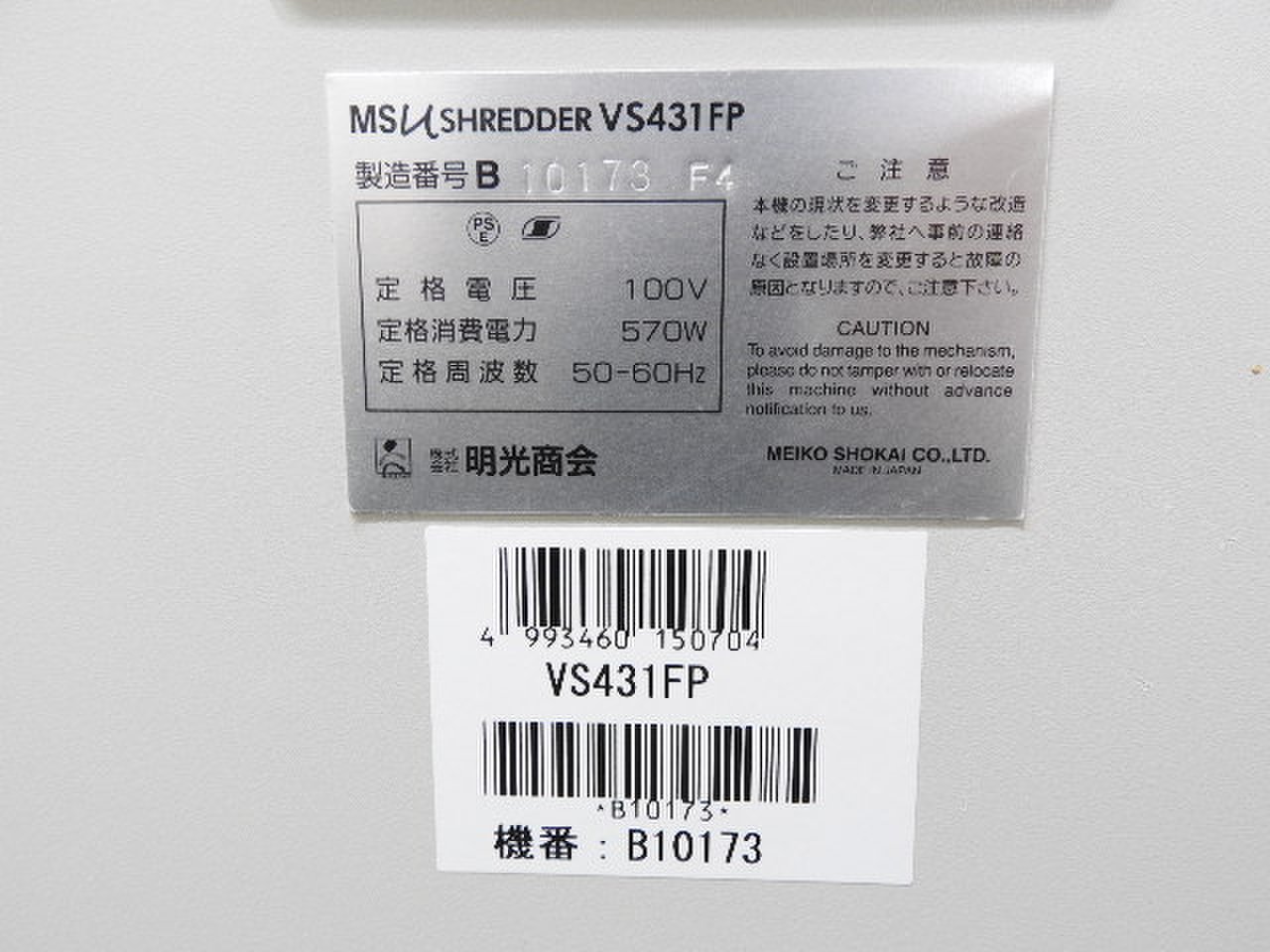 【中古】 MSシリーズ MS-VS431FP 明光商会 シュレッダー 277294