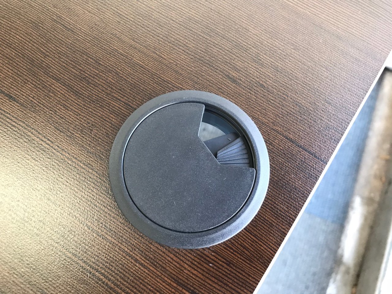 天板の両端にはパソコンや電話機の配線を通す穴がございます。