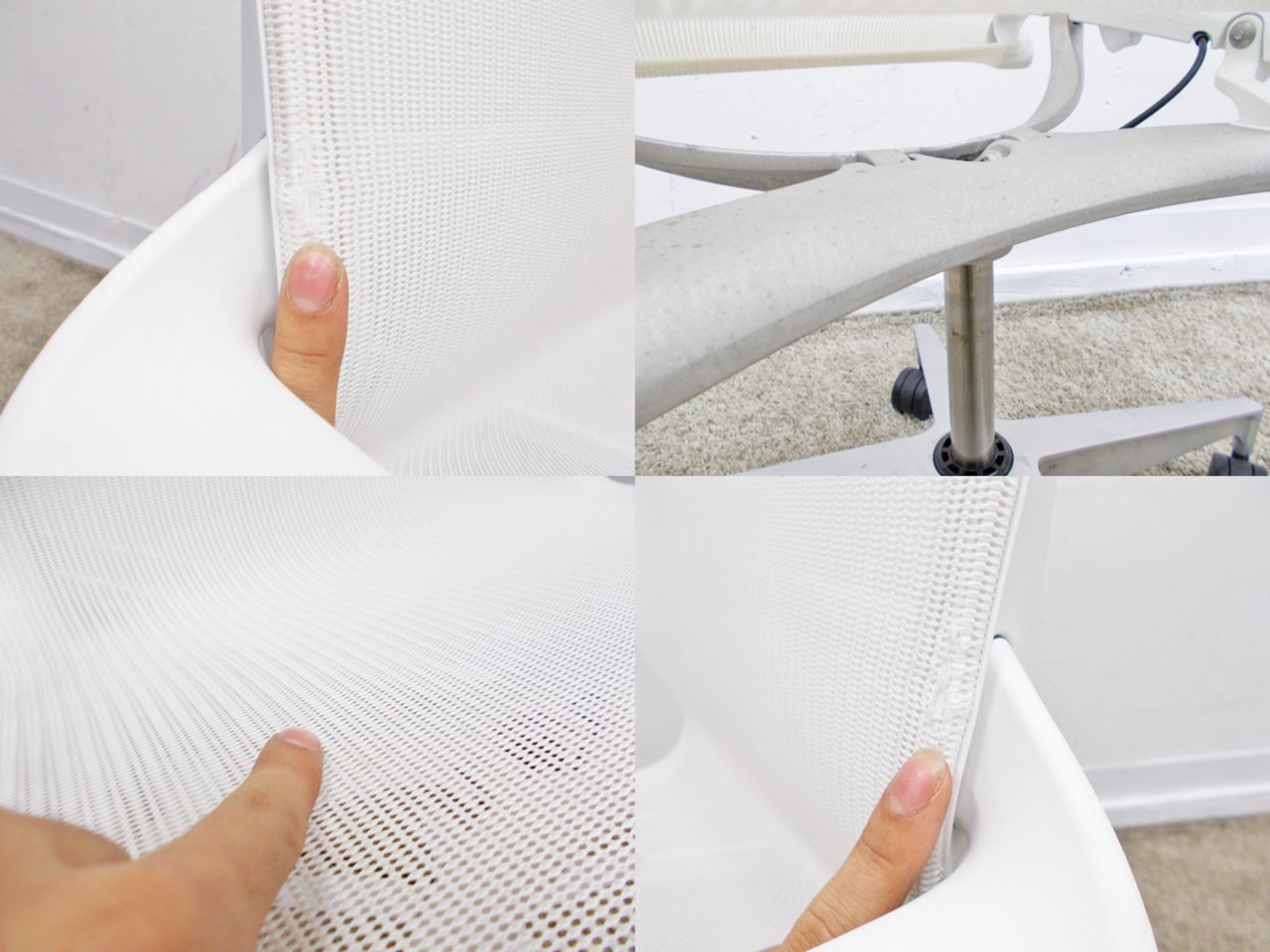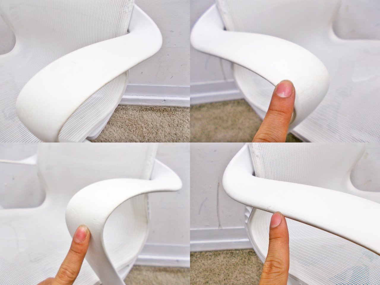 - 目立つ箇所あり傷・破れ・ほつれ・へたり・しわが多数または深い傷・破れ・ほつれ・へたり・しわが一部ある。※座面・背もたれ、シェル、脚部等にある。