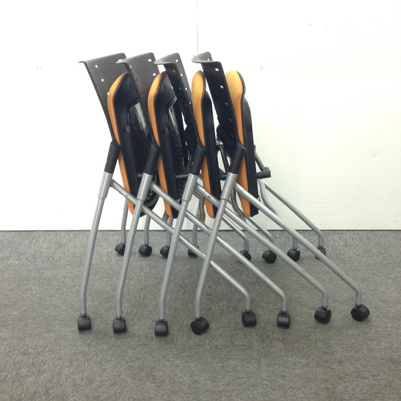 【4脚セット】オレンジで明るく|ネスティングチェア|まとめ買い- 豊中・尼崎店
