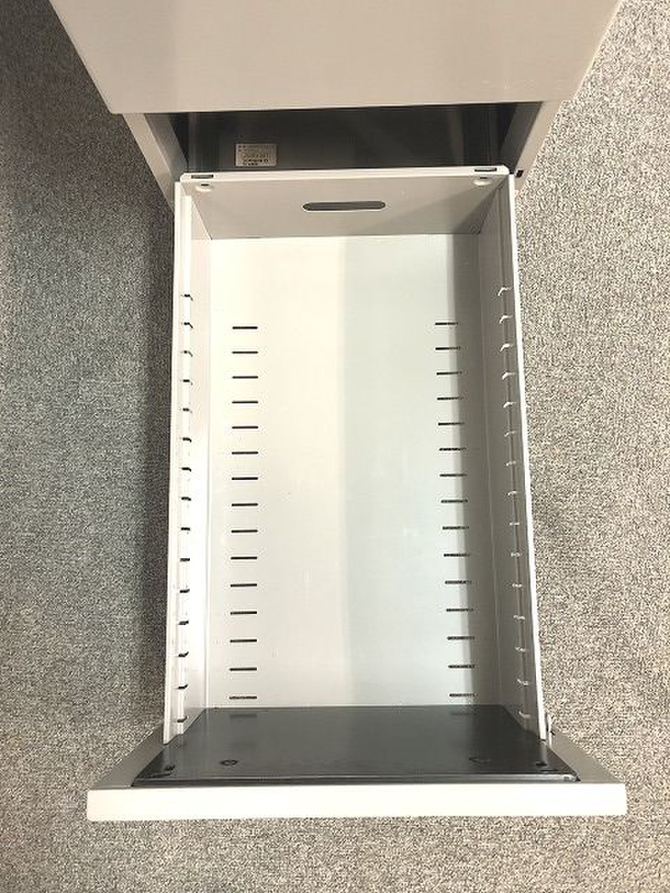 - シンプルながらも使いやすい工夫があります。ロックは、一度の施錠ですべての引出しの鍵がかかるオールロック機構。