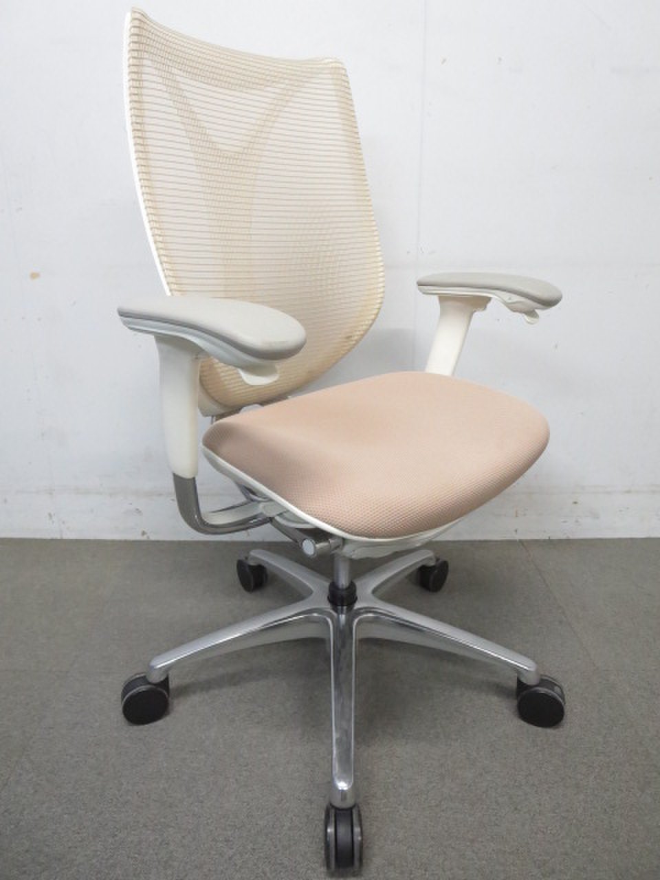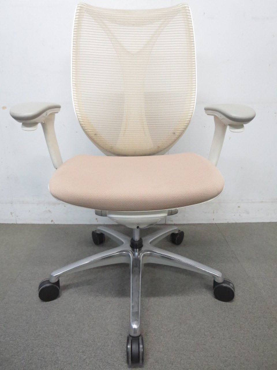 【美しい曲線デザイン!】■オカムラ製 サブリナチェア 可動肘付 ベージュ■【訳あり商品】※肘不具合ありサーキュラーバリューCO2削減量の算出について