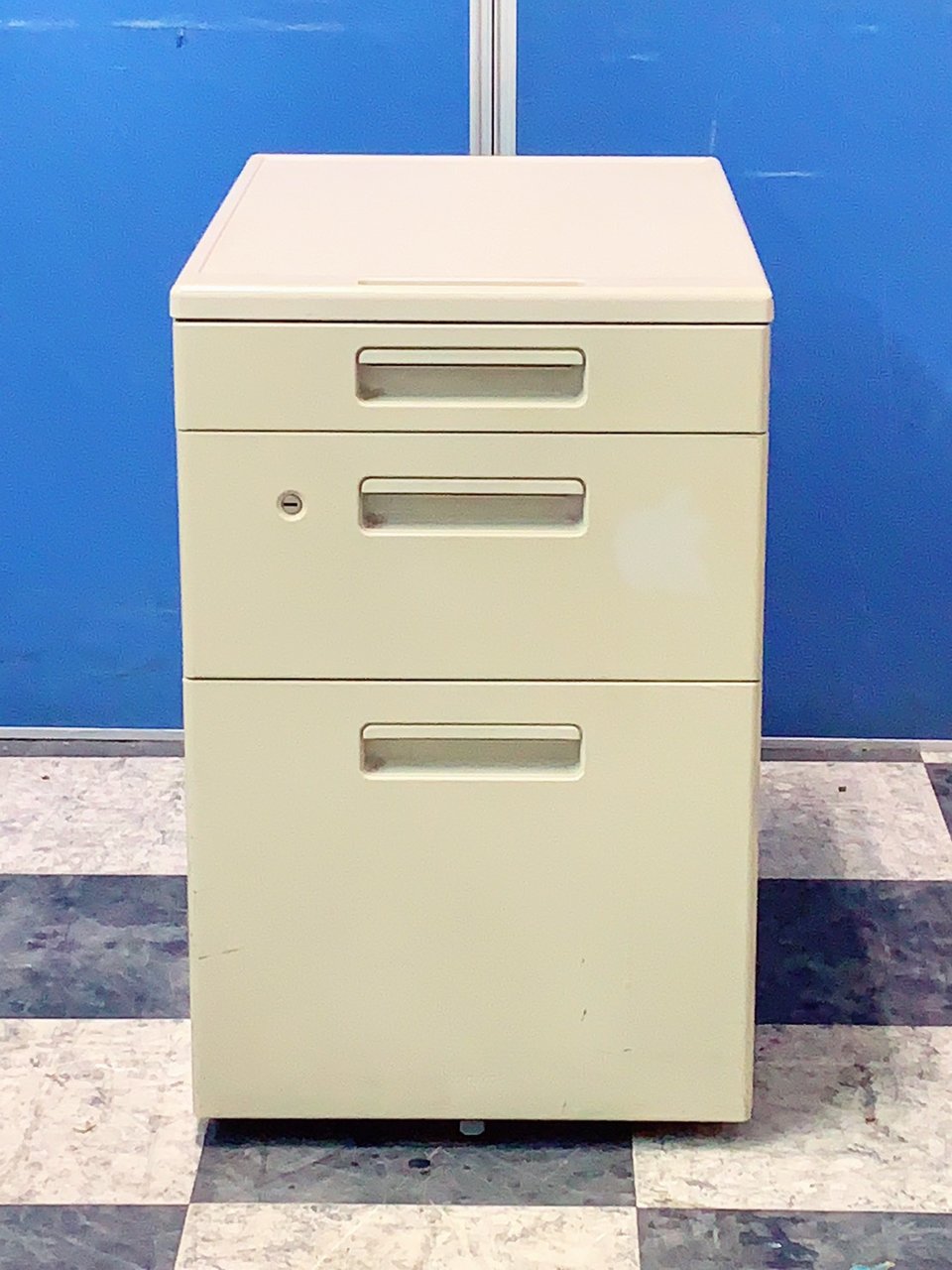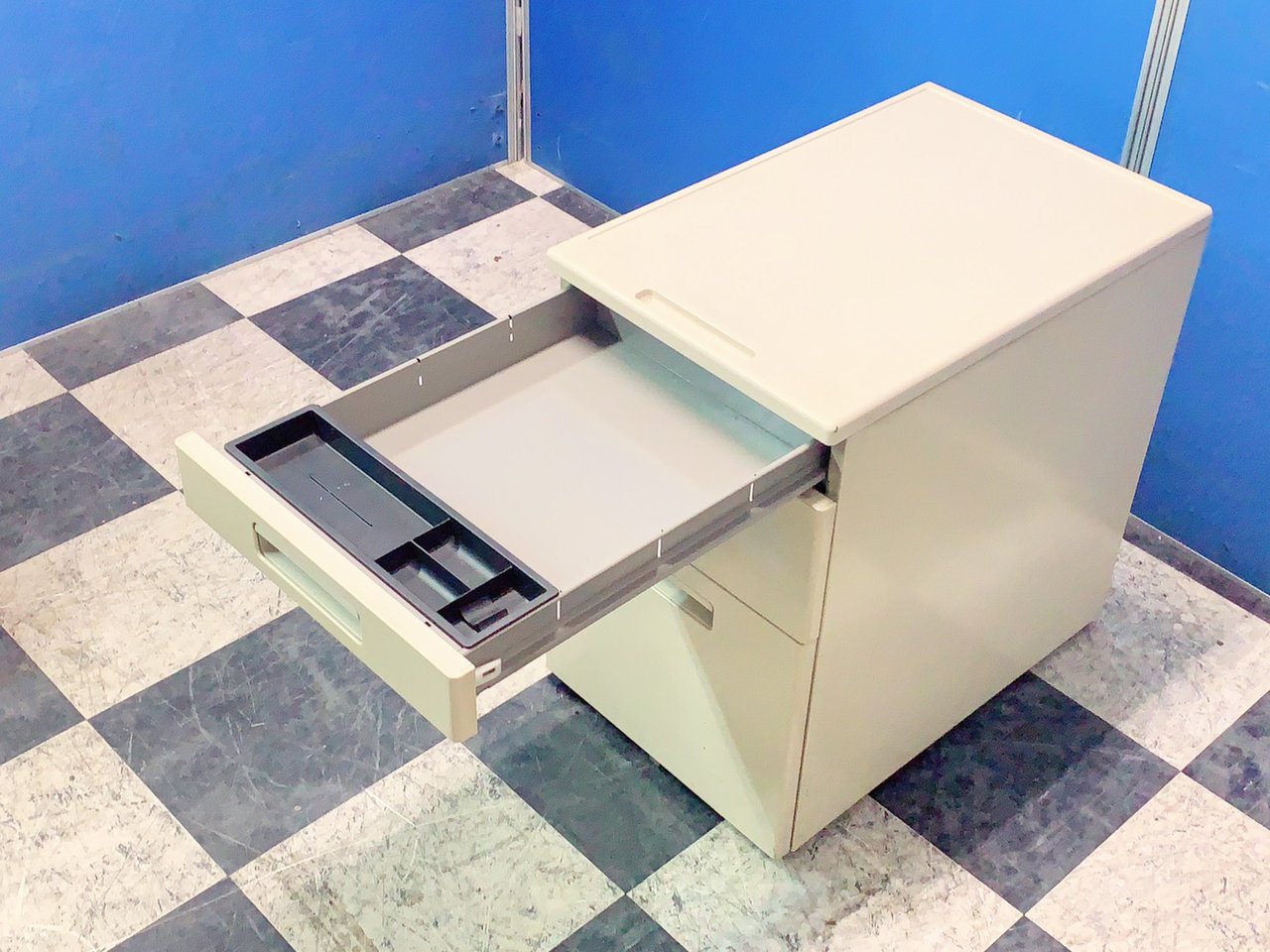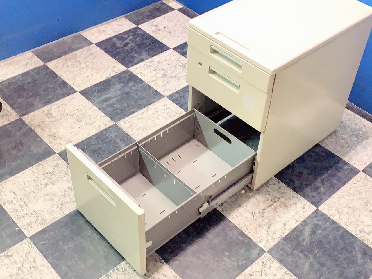 - 一部不具合ありその脇机・ワゴンの本来の効用を果たすための機能以外の一部が使用不可な状態。(例、引出が開閉しづらい、 キャスターロック機能使用不可、ラッチ不良 等がある。)