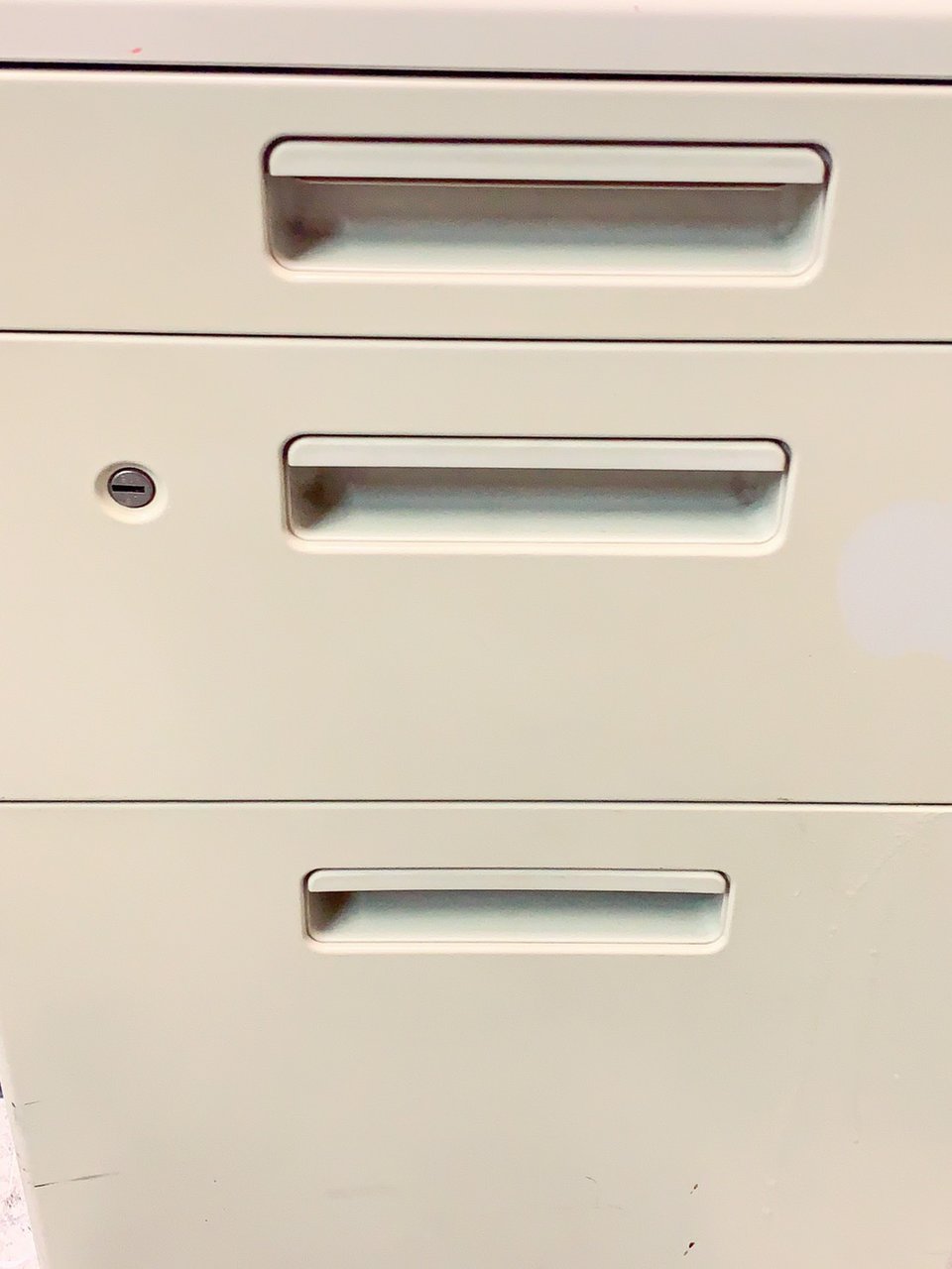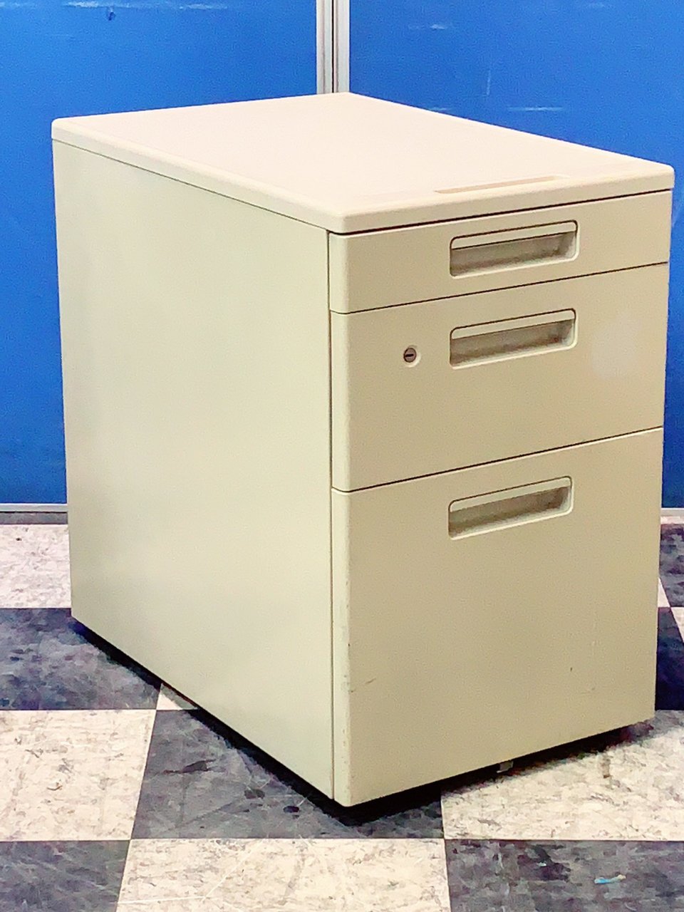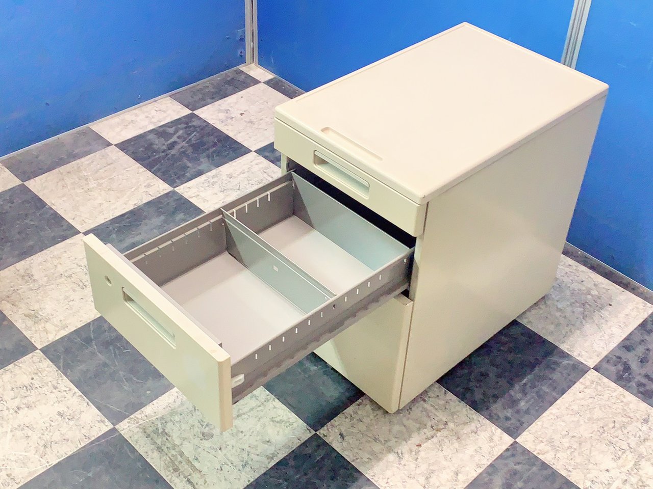 - 一部不具合ありその脇机・ワゴンの本来の効用を果たすための機能以外の一部が使用不可な状態。(例、引出が開閉しづらい、 キャスターロック機能使用不可、ラッチ不良 等がある。)