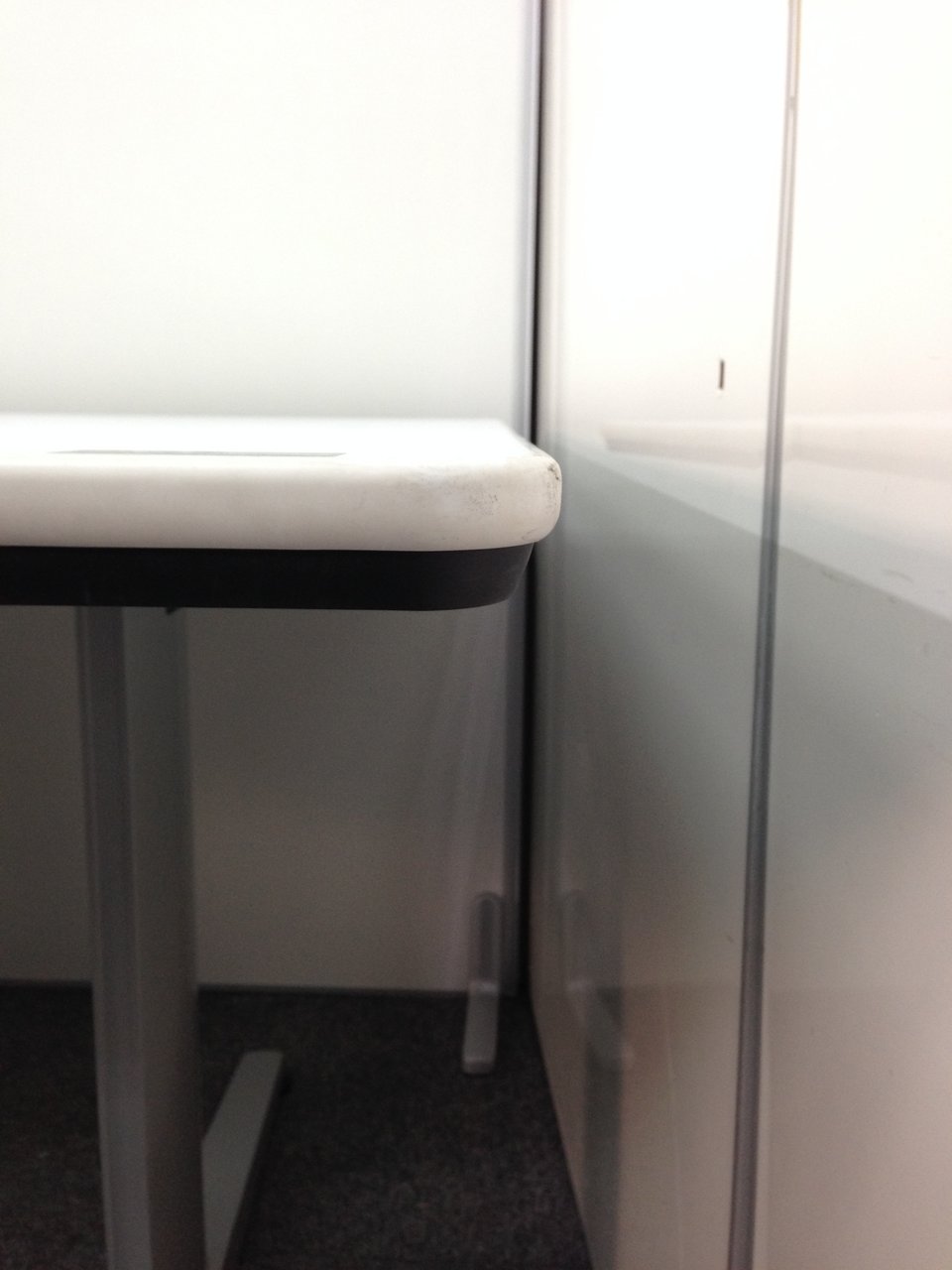 - 壊れている天板歪み、アジャスター無し、キャスター使用不可のようにそのテーブルの本来の効用を果たすための機能に不具合がある。