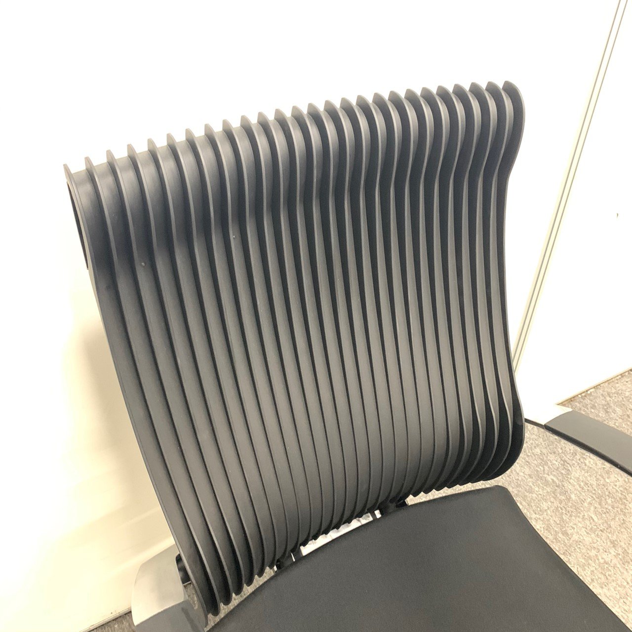 見た目は少し硬そうに見えるエラストマー素材ですが、座ってみると程よいしなり具合のやわらかな座り心地で、背中が痛くなるようなことはまるでありません。面ではなく線で支えることで、背面の通気性の良さは抜群です。