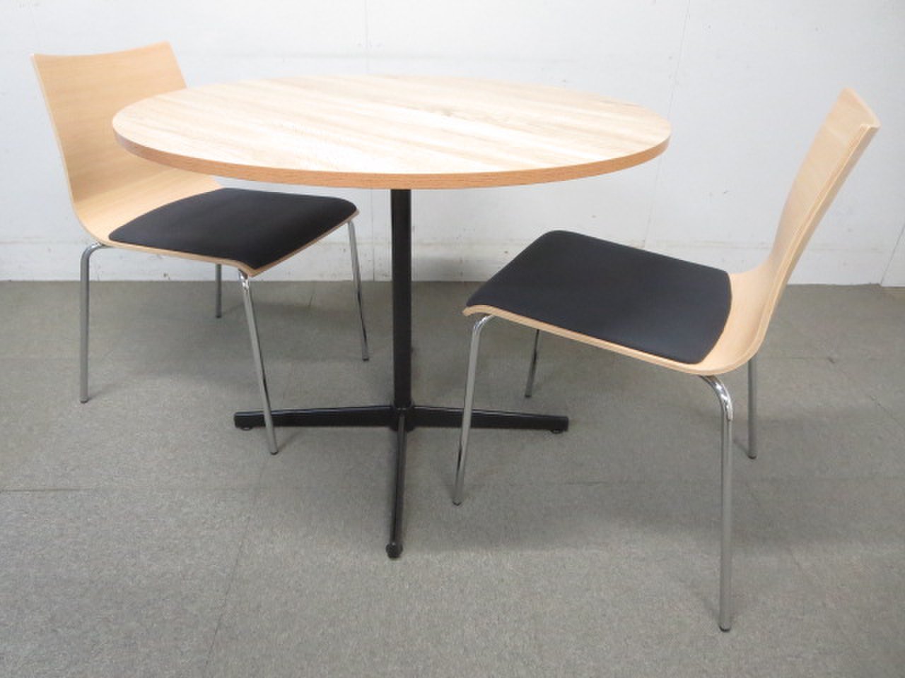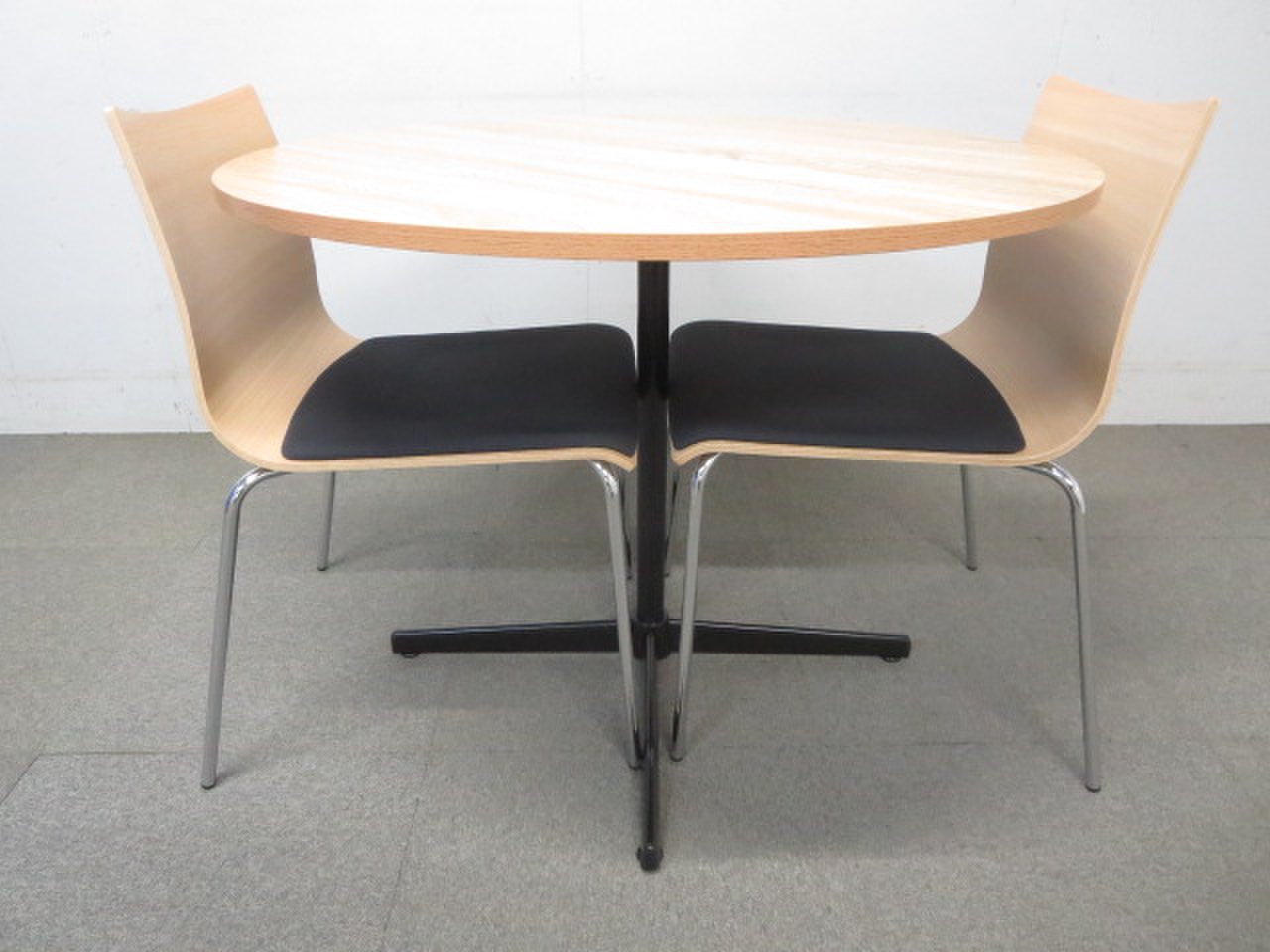 【リフレッシュスペースに!】■丸テーブル W900mm ■味わいのある木目デザイン!【状態良好!カフェテーブル】- 川崎店