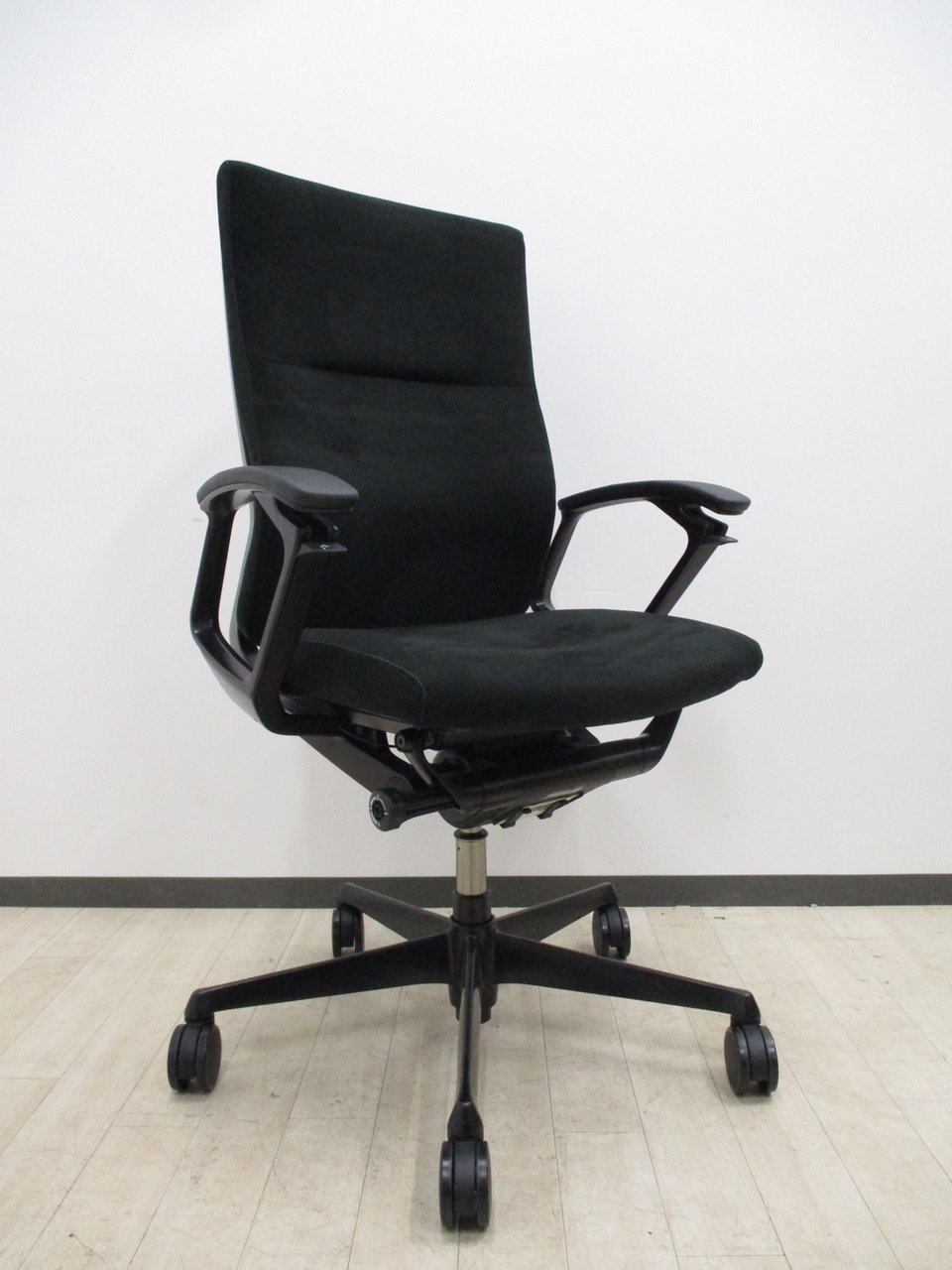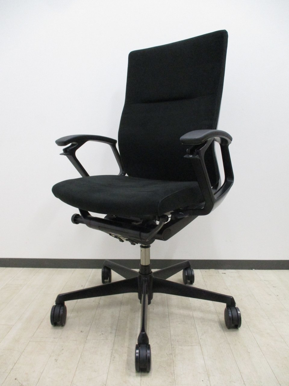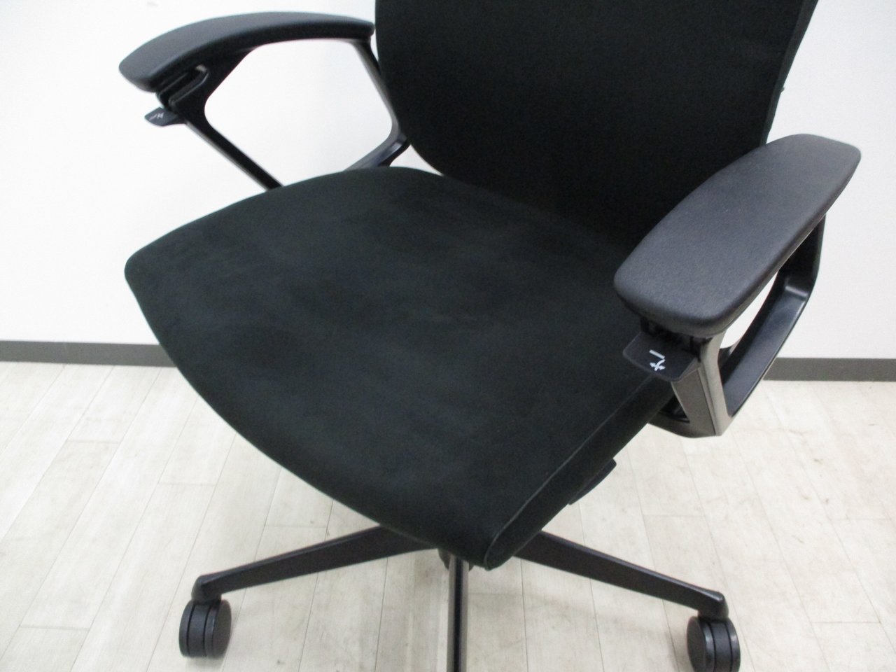 ※ひじ掛け部分に使用感ありのため、特価!【オカムラの最上級モデル!高級感と機能性を融合させたチェア!】■ハイバック 肘付き 背・座クロス張地(スエード調) 固定肘 ※サイド剥がれ有り ランバーサポート付き ブラック/オカムラ/デューク